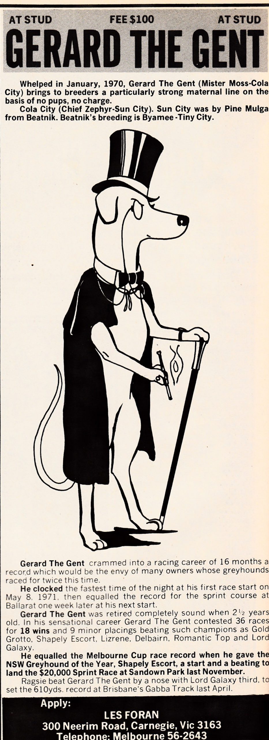 Reg Hazelgrove – Wasn’t the Little gent a younger brother to Gerard the gent they were owned by Brisbane vet Dion Denarist.