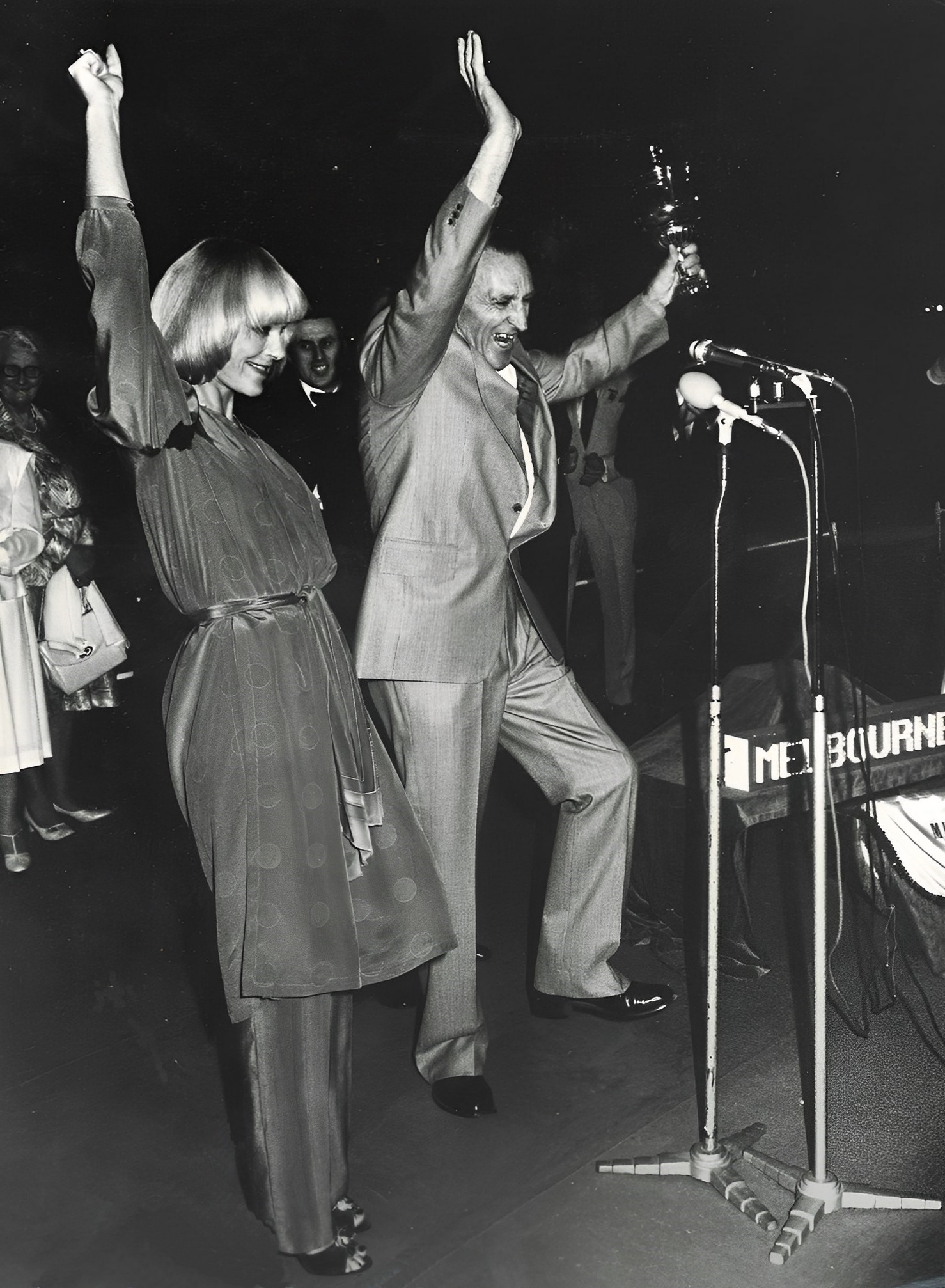 Here is some classic footage of the 1979 Melbourne Cup race and presentation. Won by the mighty Acclaim Star trained by Billy Fletcher. The outstanding field included Big Pinch, White Panther, Relle Lousie, Traduce, Rebel Maker, Striding Ahead and Akii Victor. The club that year brought out vivacious German Actress Elke Sommer watch how excited winning owner Frank Brown gets particularly in the presence of Elke. The race caller and M.C. is Bryan Martin with extra comments from Peter Donigan.