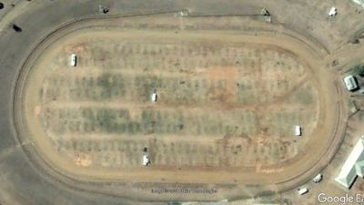 Cory James Hiscock– This was Parklands not long before closure, as you can see the track had two differing turns radius wise. Similar to older designs at Geelong/Warragul/Bendigo. Starting positions on this track are again similar to what we see today with the want for a shorter 350-400 start on a 600m circ track. What people may not realize, Bede designed the Parklands track with very specific downhill/uphill runs in the straights. So they were like a banana. I was told he had experimented with greyhounds at running speeds on a running machine that could tilt in any direction and this informed him of the length a greyhound could run down hill prior to over galloping. So greyhounds out of the 457 ran downhill for half the straight, uphill into the turn, which when grassed had high banking, then down and up again in the front straight. May be an image of grass.
