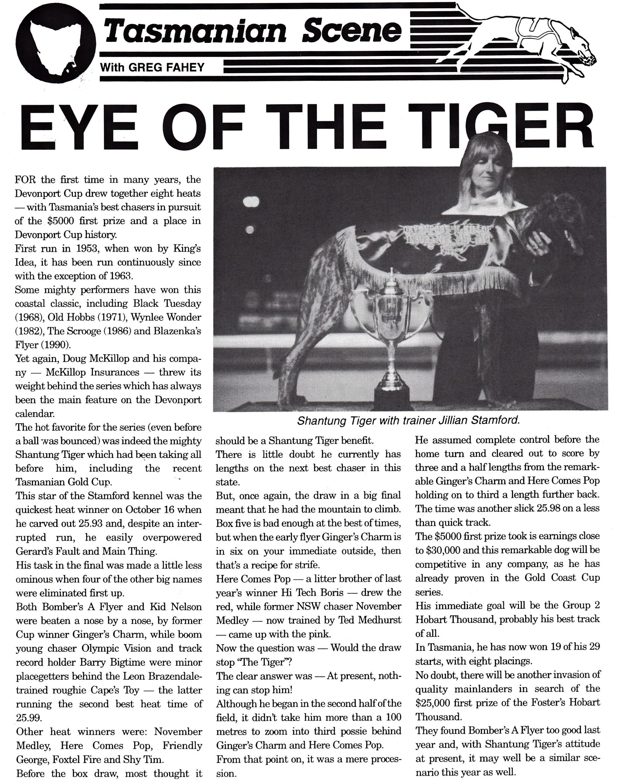 Mark Moroney- Shantung Tiger was a rocket virtually unbeatable on one turn tracks I think he won Hobart Thousand the same year