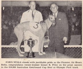 1967 Australian Cup winner Fawn Nulla with Sir Henry Bolte having a smoke at the Presentation.