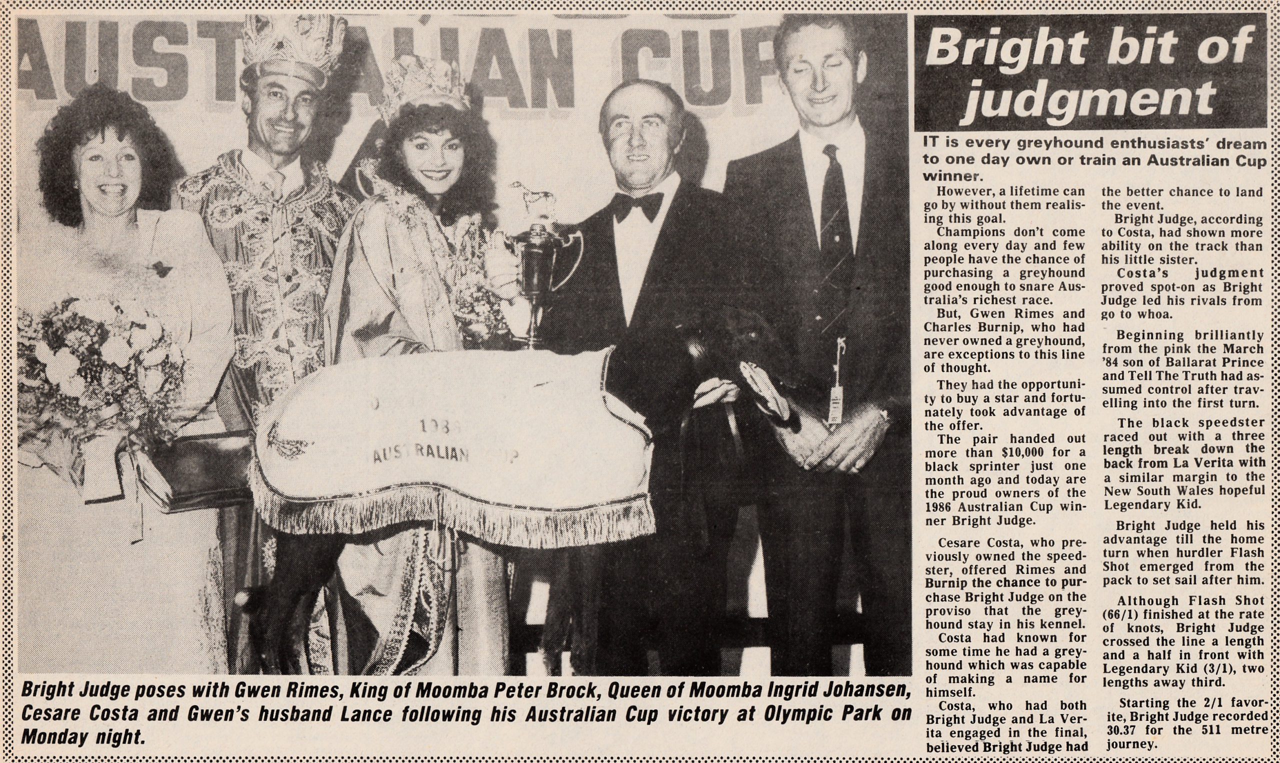 Costa’s career highlight came in 1986 when he won the $100,000 Australian Cup with Bright Judge.