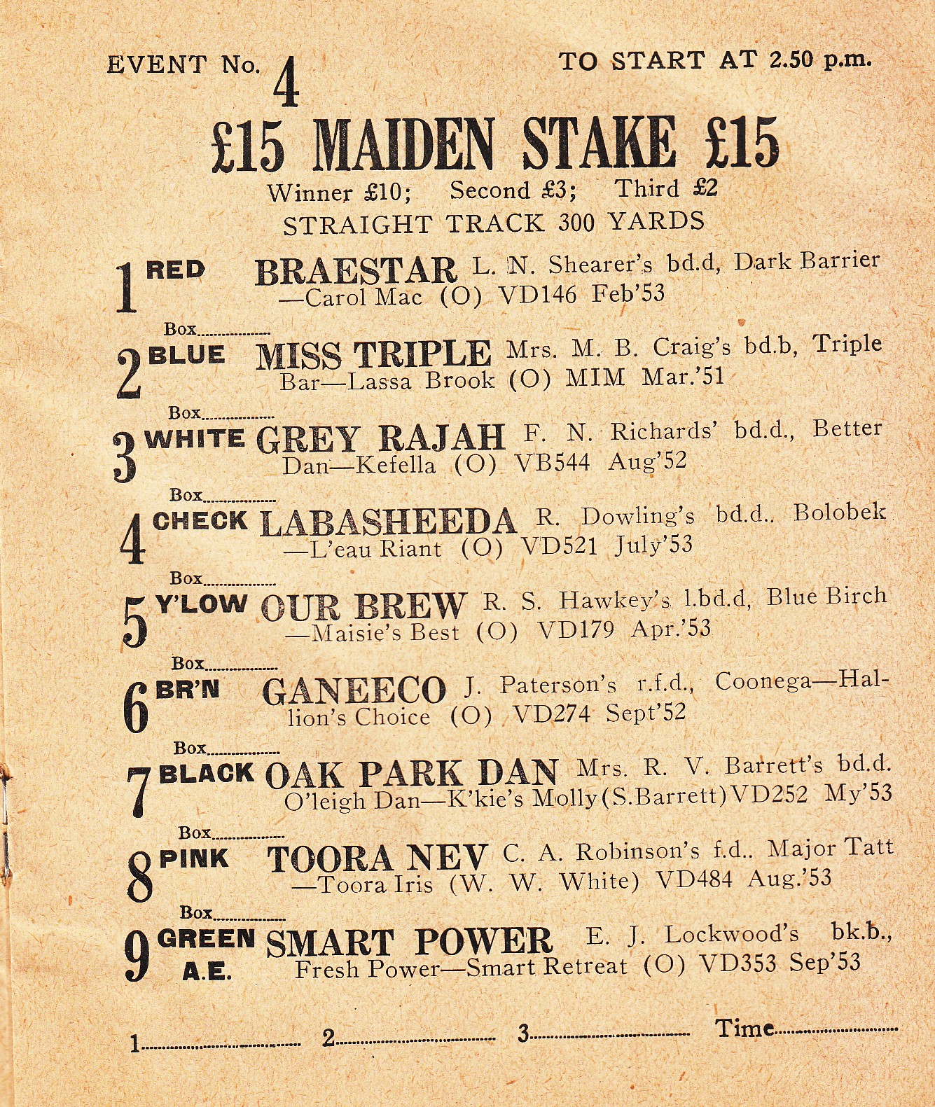 Those rug colours were 2 blue and 4 check in 1949 as per this Racebook from Napier Park 16th May.