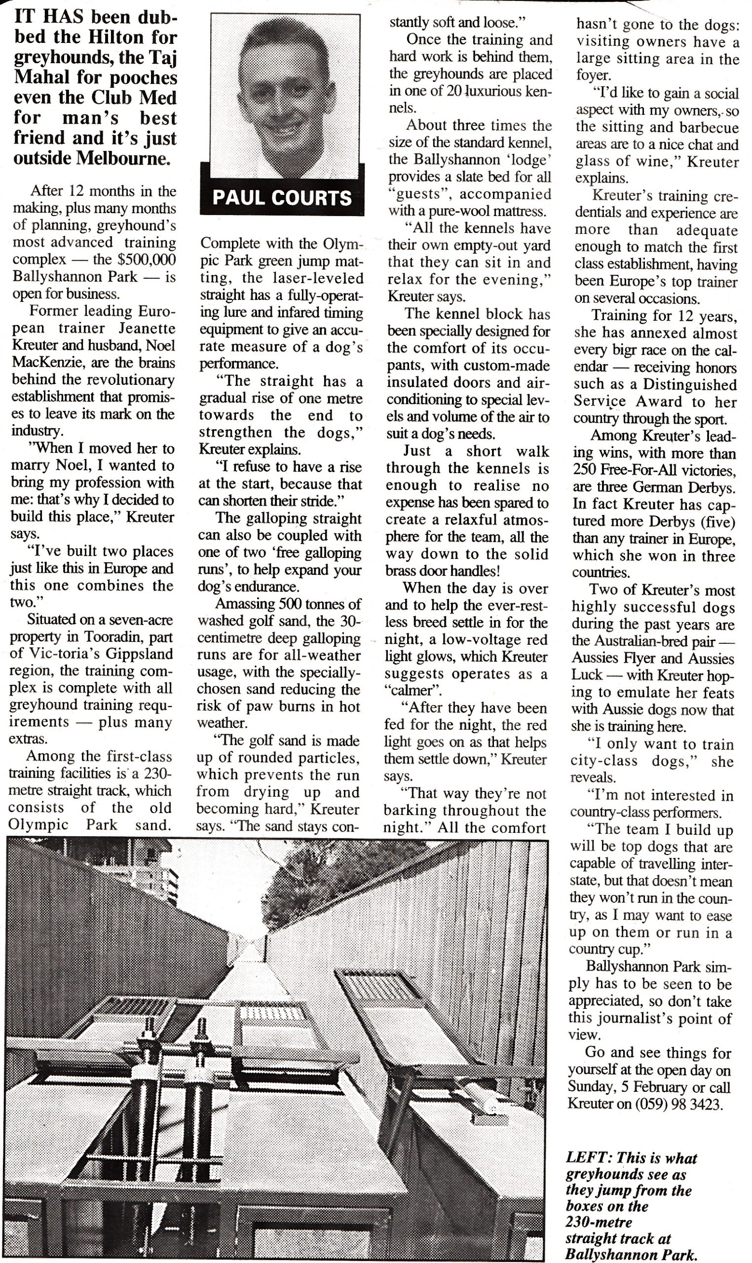 Remember when this property at Tooradin operated by a number of different people over the years became Ballyshannon Park. As outstanding as it was very few winners came out of the place. Paul Courts wrote this story in 1995. The Tooradin Trial Track in the same area however was later in 2015 to become infamous and remembered for all the wrong reasons.