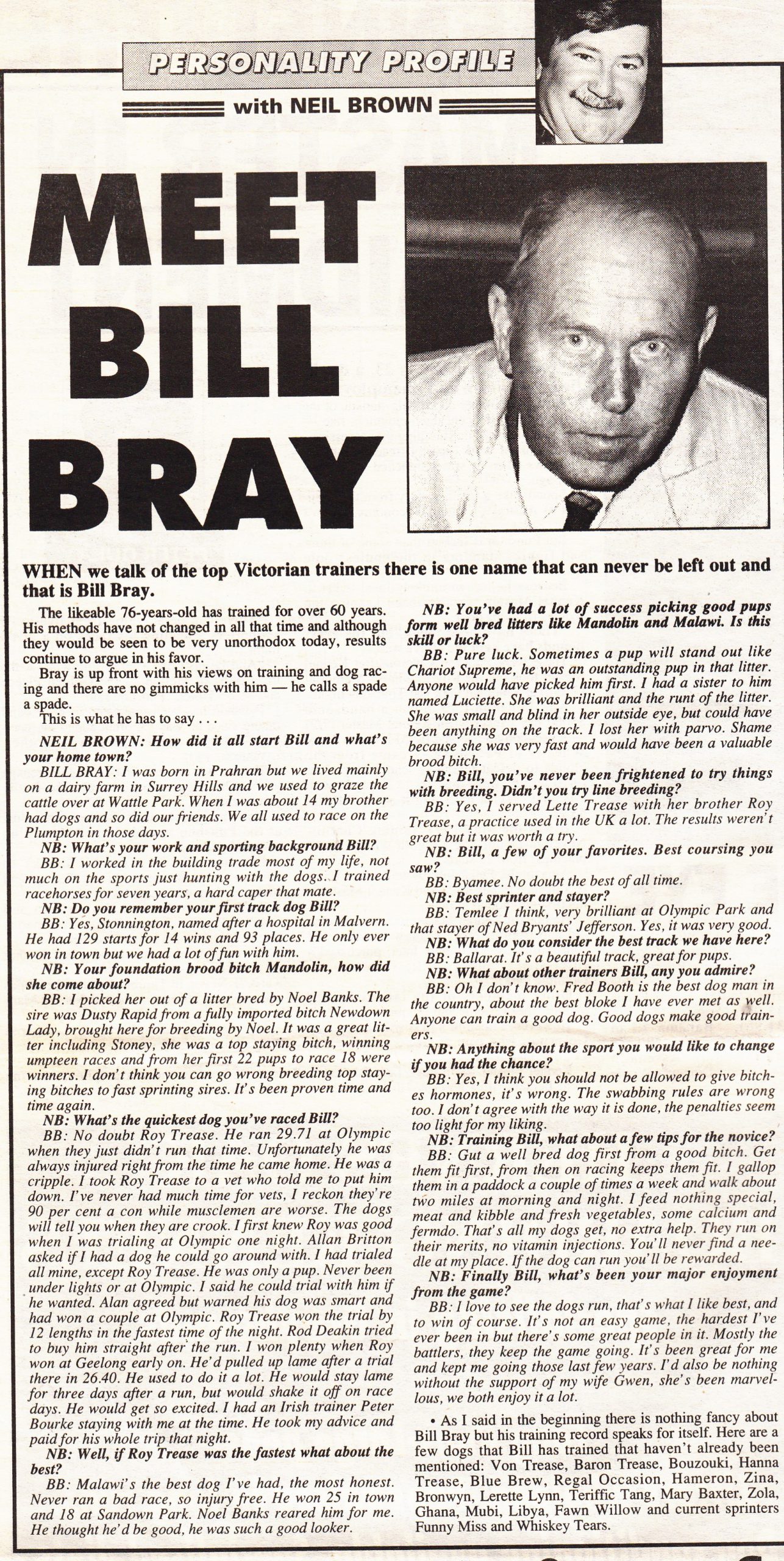 One of the most successful and interesting trainers of his time was the late Bill Bray. Here is a Q & A I did with him in 1994