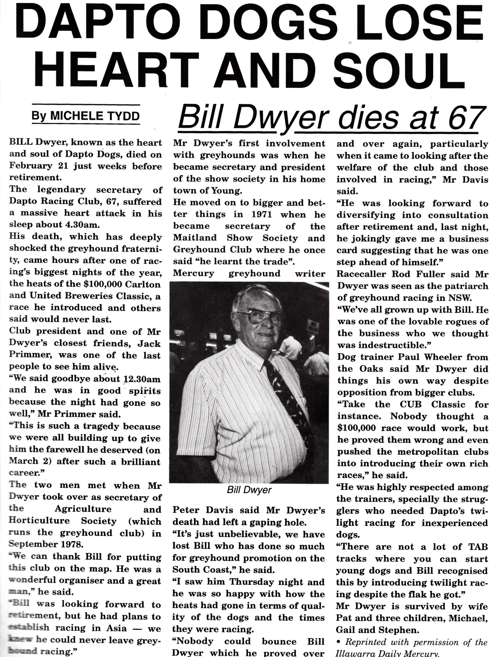 Another outstanding administrator and like Ken Carr a lovely bloke. The late Bill Dwyer. A Q and A and tribute.