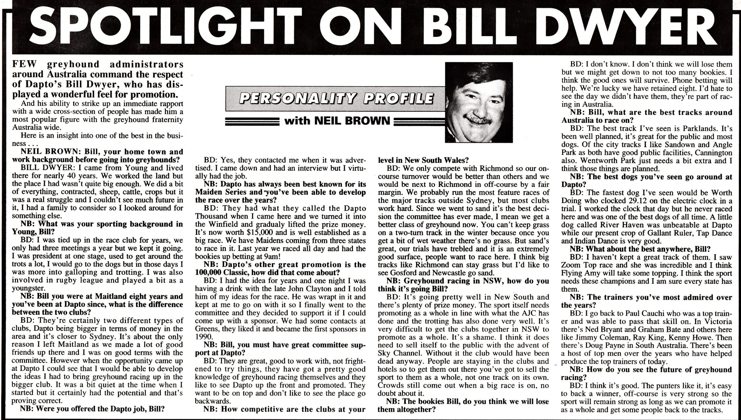 Another outstanding administrator and like Ken Carr a lovely bloke. The late Bill Dwyer. A Q and A and tribute.