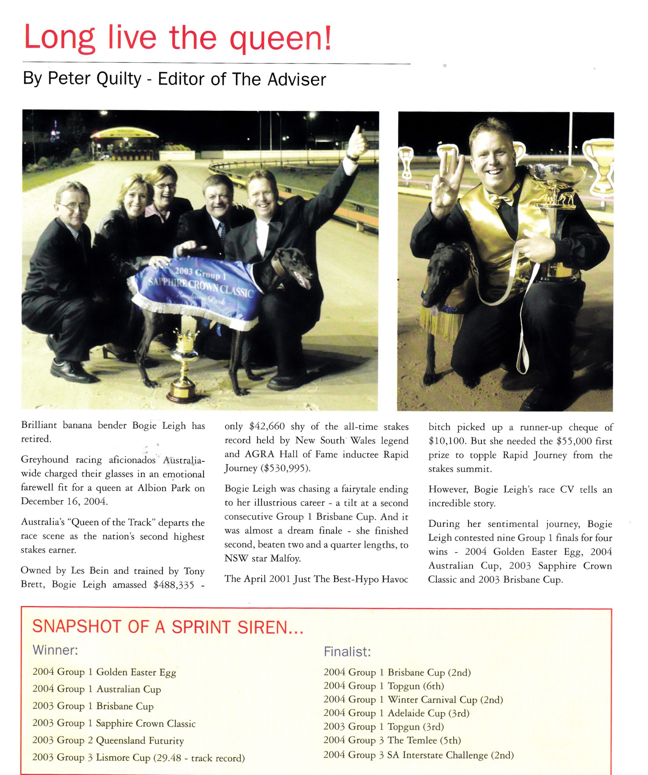 Clint Kraztmann -Superstar bitch I still think Tony’s best in a long list of champion greyhounds