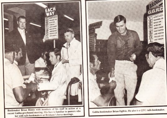 Bookmakers Brian Binnie and Brian Ogilvie. 5 November 2020 Neil Brown 70's 0 Anyone remember betting with these guys at the Gabba Brian Binnie and Brian Ogilvie.