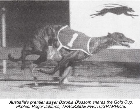 Ron Ball’s champion stayer Boronia Blossom. For the record she had four litters two to Head Honcho, a litter to Master Havoc and one to Malawi’s Prince 30 pups in all with nothing jumping off the page.