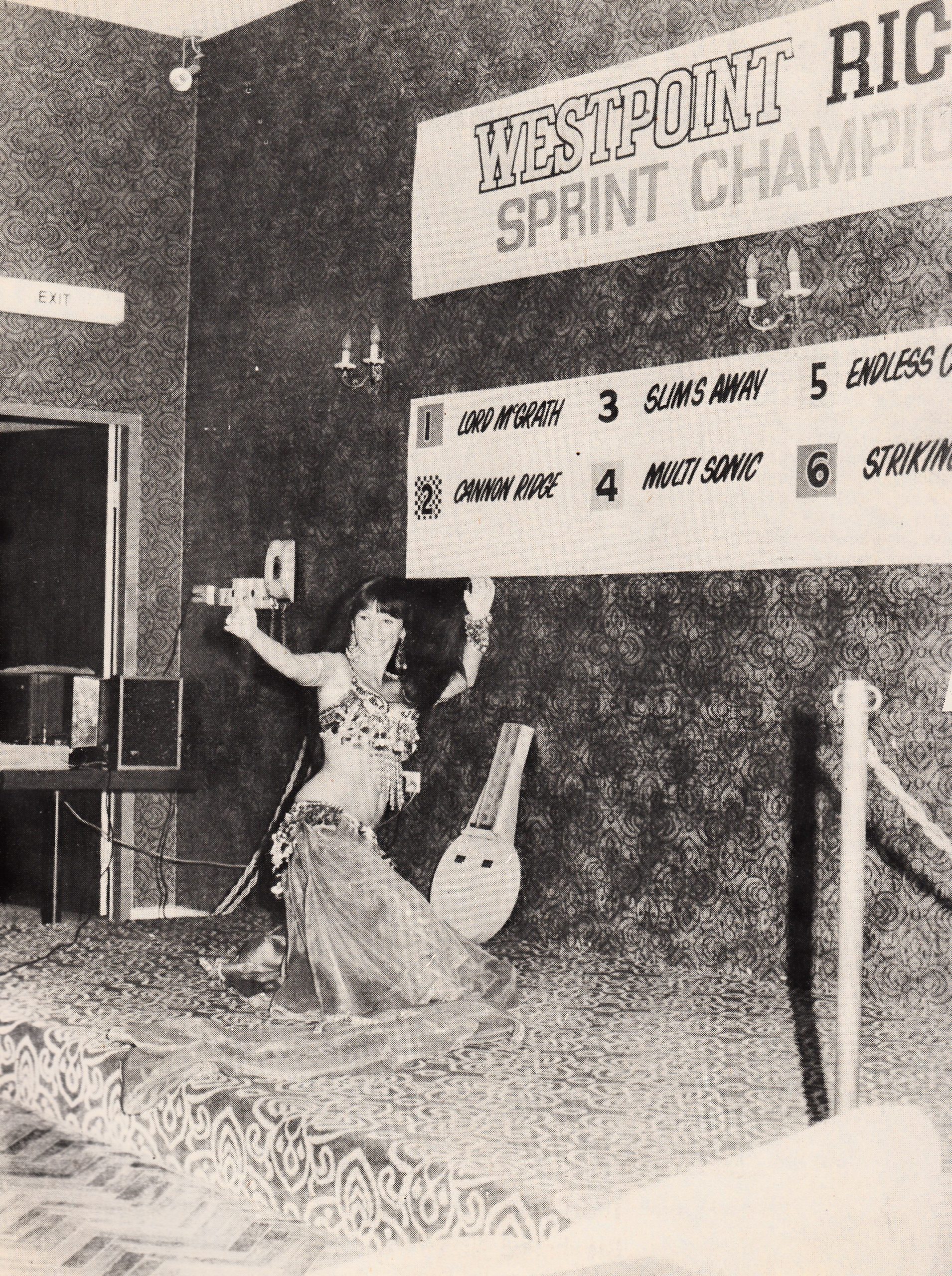 I have seen box draws done in many different presentations. Here is a different take on the box draw for the 1976 Richmond Sprint Championship. The night featured a Belly Dancer. The night also included a phantom call from Graham McNiece, a few blue jokes from comedian Jack O’Leary and a tip from Ian Maurice for Anglo Beau. The final was won by Endless Cloud (5) from Shim’s Away (3) and Striking Lane (6).
