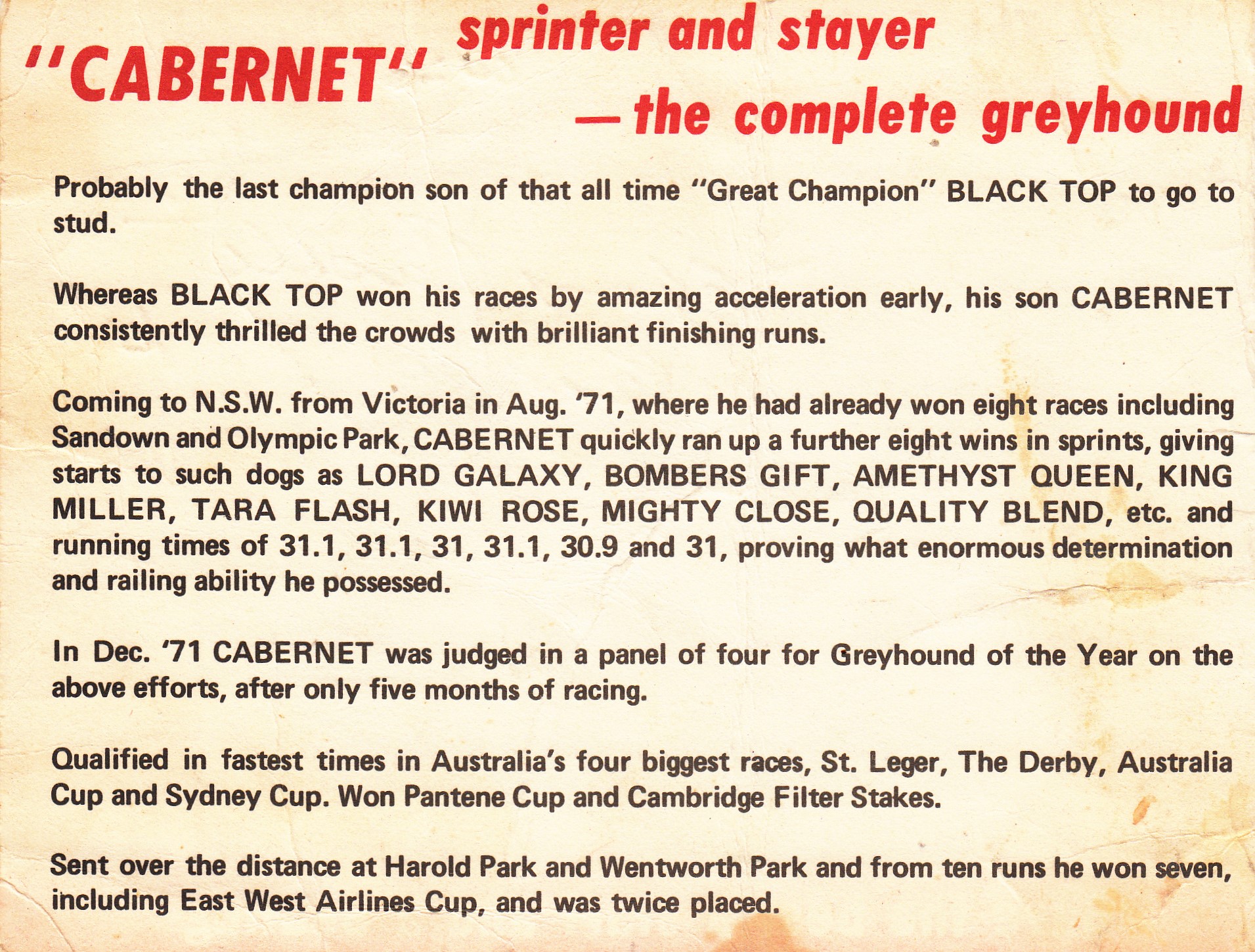 Cabernet 18 May 2021 Neil Brown 70's 0 Early 70’s star Cabernet Victorian owned NSW trained with another of PA’s Stud Cards.