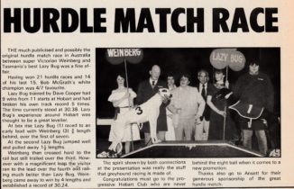 Hurdle match race at Hobart between Weinberg and Lazy Bug. 1985 Tassie Triumph.
