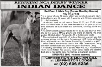 1994 NCA Derby winner Indian Dance short but brilliant race career and recording of his loss.