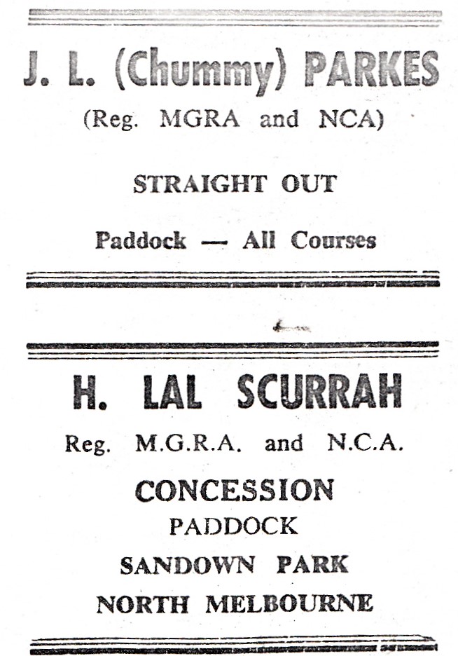 Coral Scott- Robert Mccurdy chummy was pacemaker days probably early fiftiesl we won our first race at maribynong in 1953 lal was much later I remember jean bought a hurdler that had won a couple at Warragul but it only chased there…pop