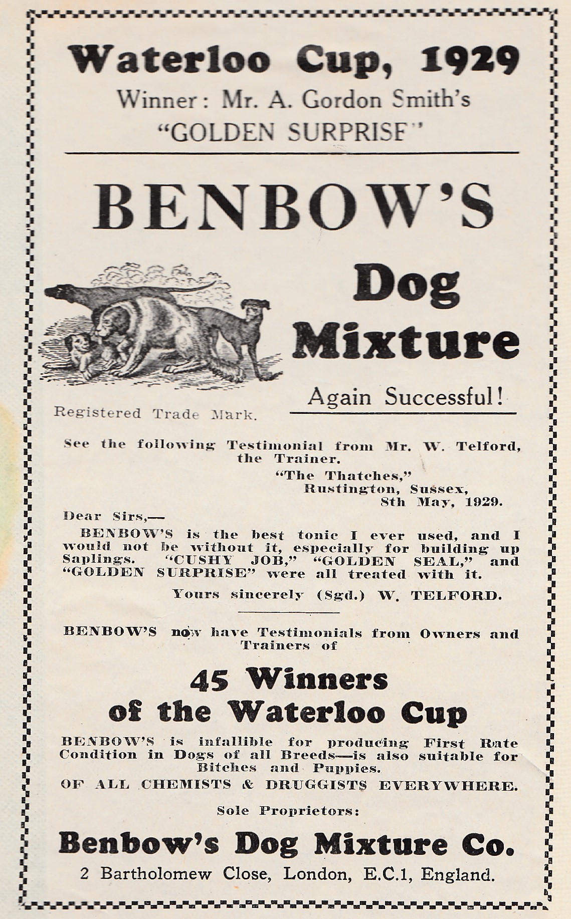 Here is a collection of Coursing photo’s featuring a couple of famous Judges on Horseback and a number of shots from different time periods. Some Coursing shots from 1917. Coursing at Werribee and the two dogs that were finalists in the Derby at Mayborough. It would have been some exercise in 1914 to travel to the other side of the world to compete in the famous English Coursing Waterloo Cup. However, greyhounds Once Australia and Captain Wood were our Representatives. With Once Australia winning the Waterloo Plate. You would also certainly like to get your hands some Golden Surprise Benbows Dog Mixture popular in 1929 after having testimonials from no less than 45 Waterloo Cup winners. Must have been some product.