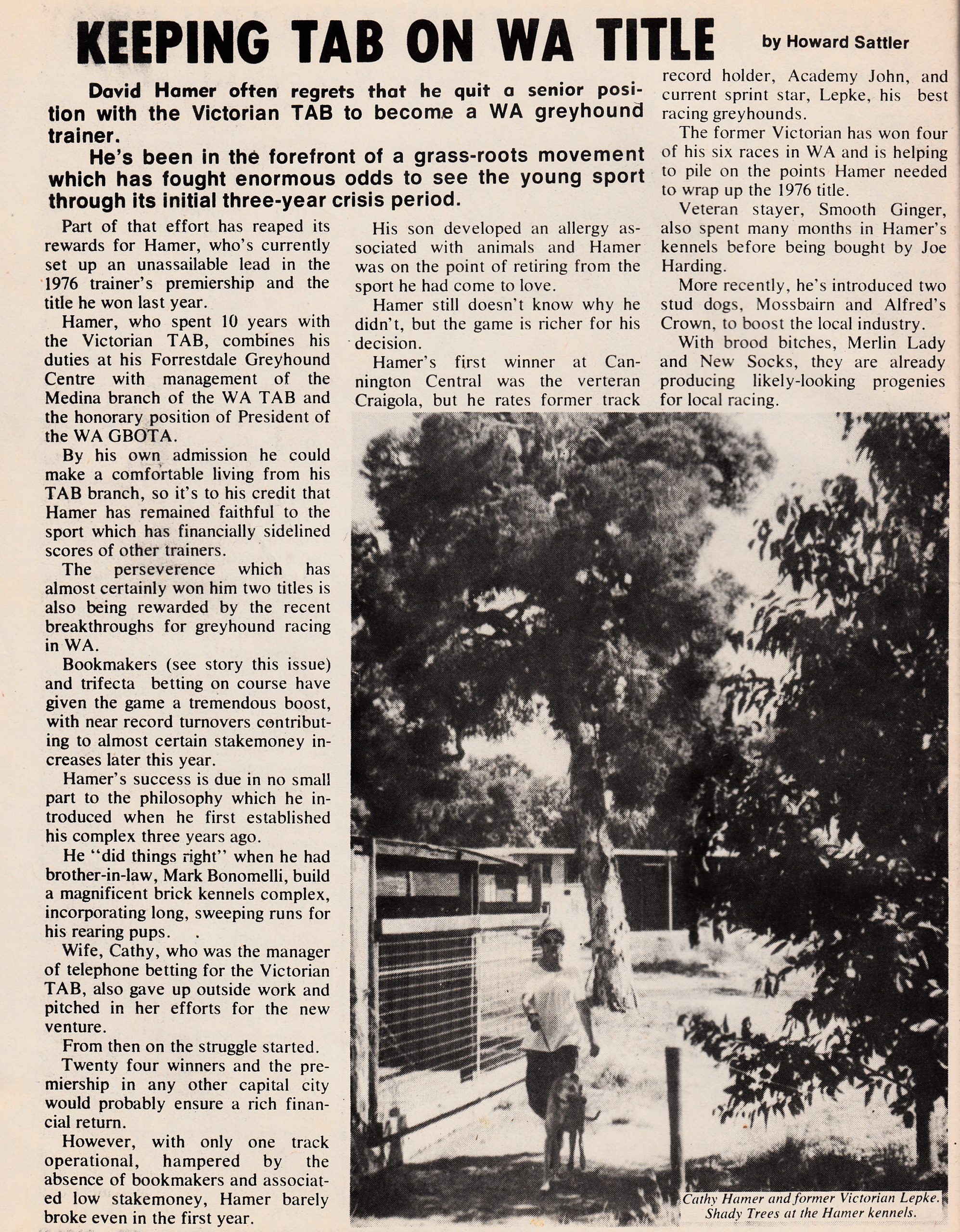 Member Kerry Chalker notified us of the sad passing of outstanding WA trainer David Hammer in late August. I only knew of David’s fantastic record with Greyhounds over many years never having the pleasure of meeting him. A WA Hall of Famer he was inducted in 2019. I have included a link to his induction. Plus, a story I found in the 1977 National Greyhound News.