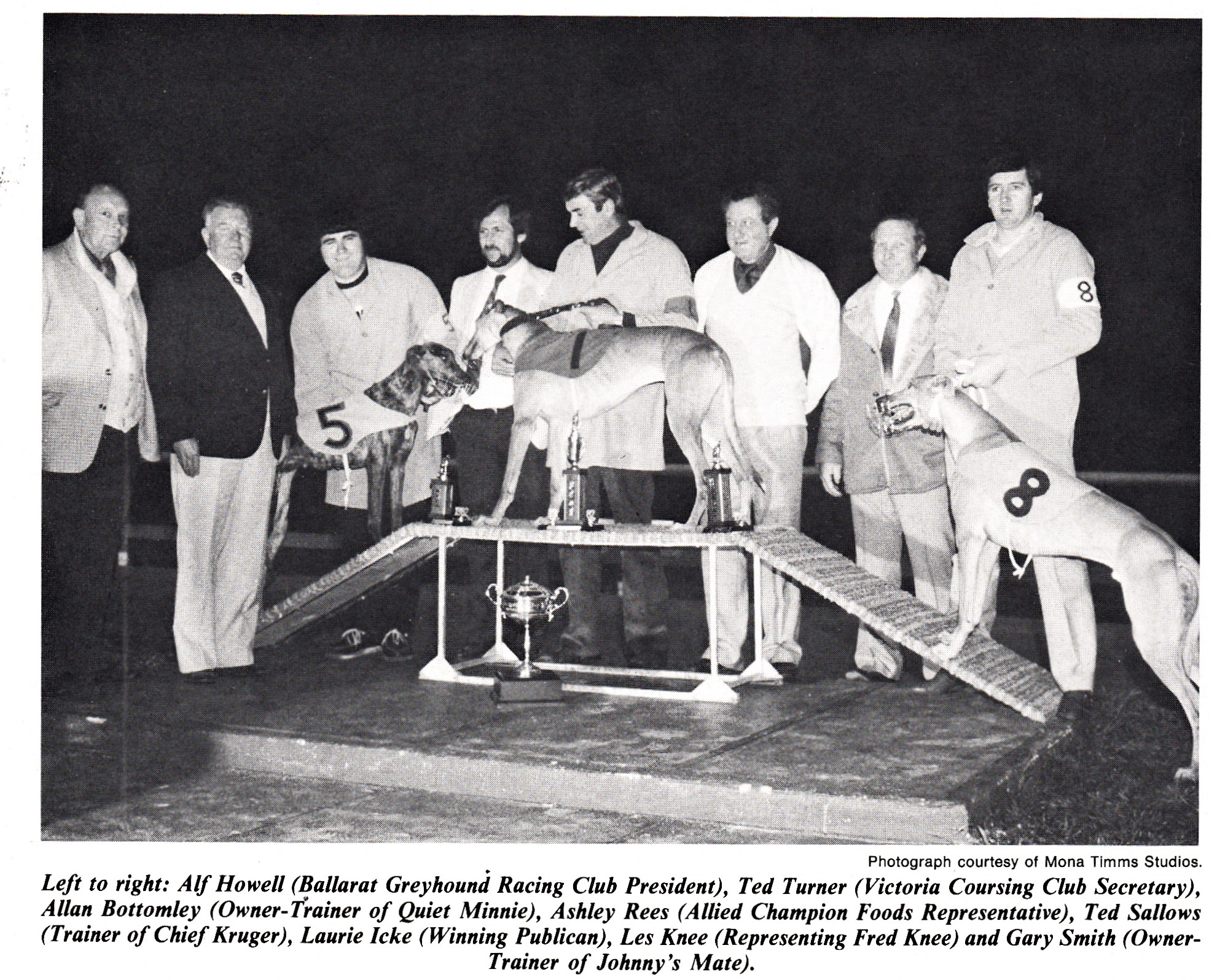 Some well-known heads here for an incredibly unique event the Duplex Cup of 1982. It was a combination of a Coursing event staged at Geelong and a race final at Ballarat. The winner was super coursing dog Chief Kruger for Ted Sallows.