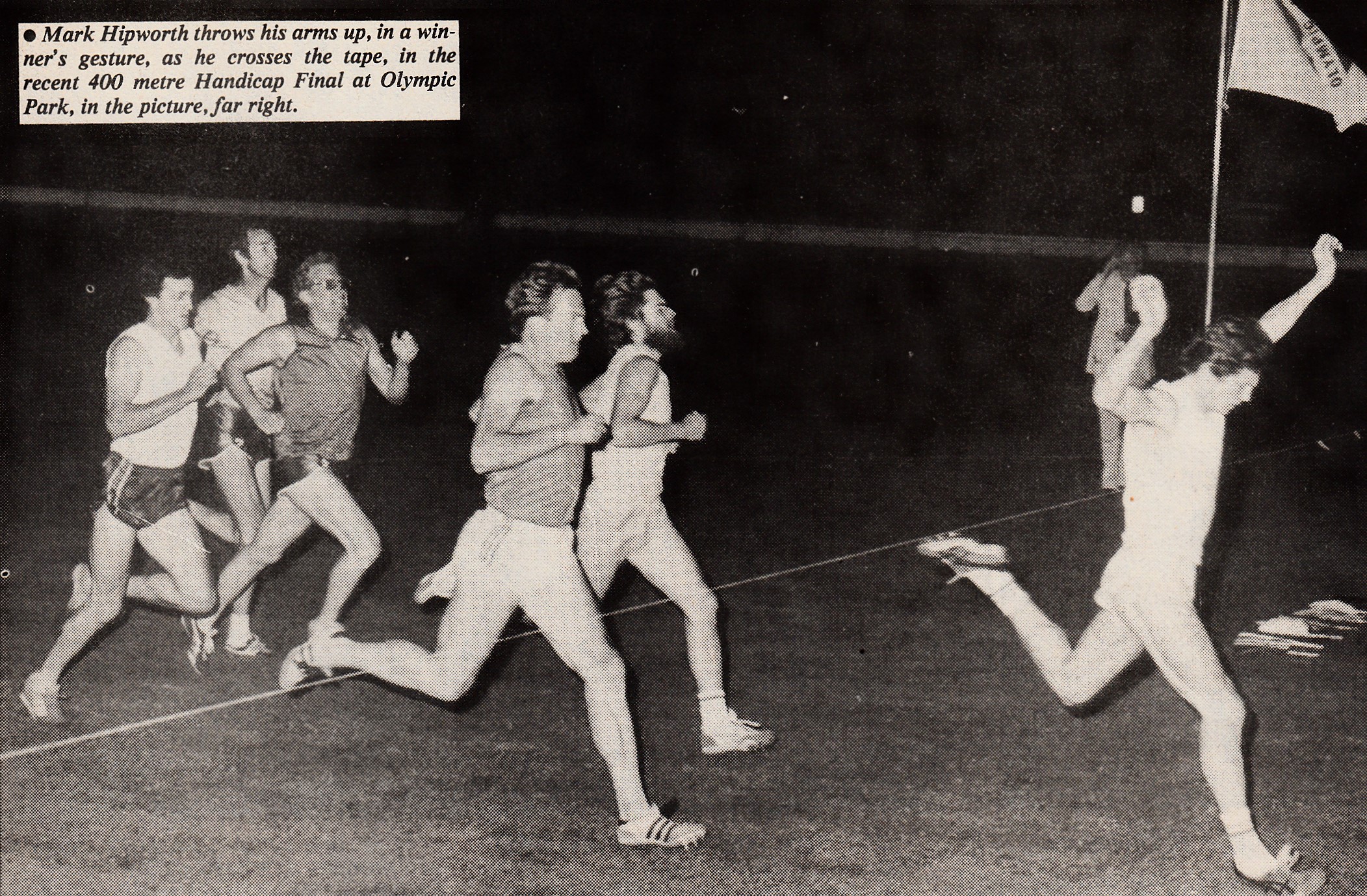 The footing running days at Olympic Park. I know Howard Culph remembers them fondly. Like most things to do with Pro-running I’m not sure every event was above board. Here is Mark Hipworth an outstanding 400 metre runner and a very handy footballer. He played at my club Springvale in the early 80’s and at Coburg prior to that. Good bloke and a mate of a mate mine Dave Haigh who raced dogs with us and won a 400 foot race on Melbourne Cup night at Sandown.