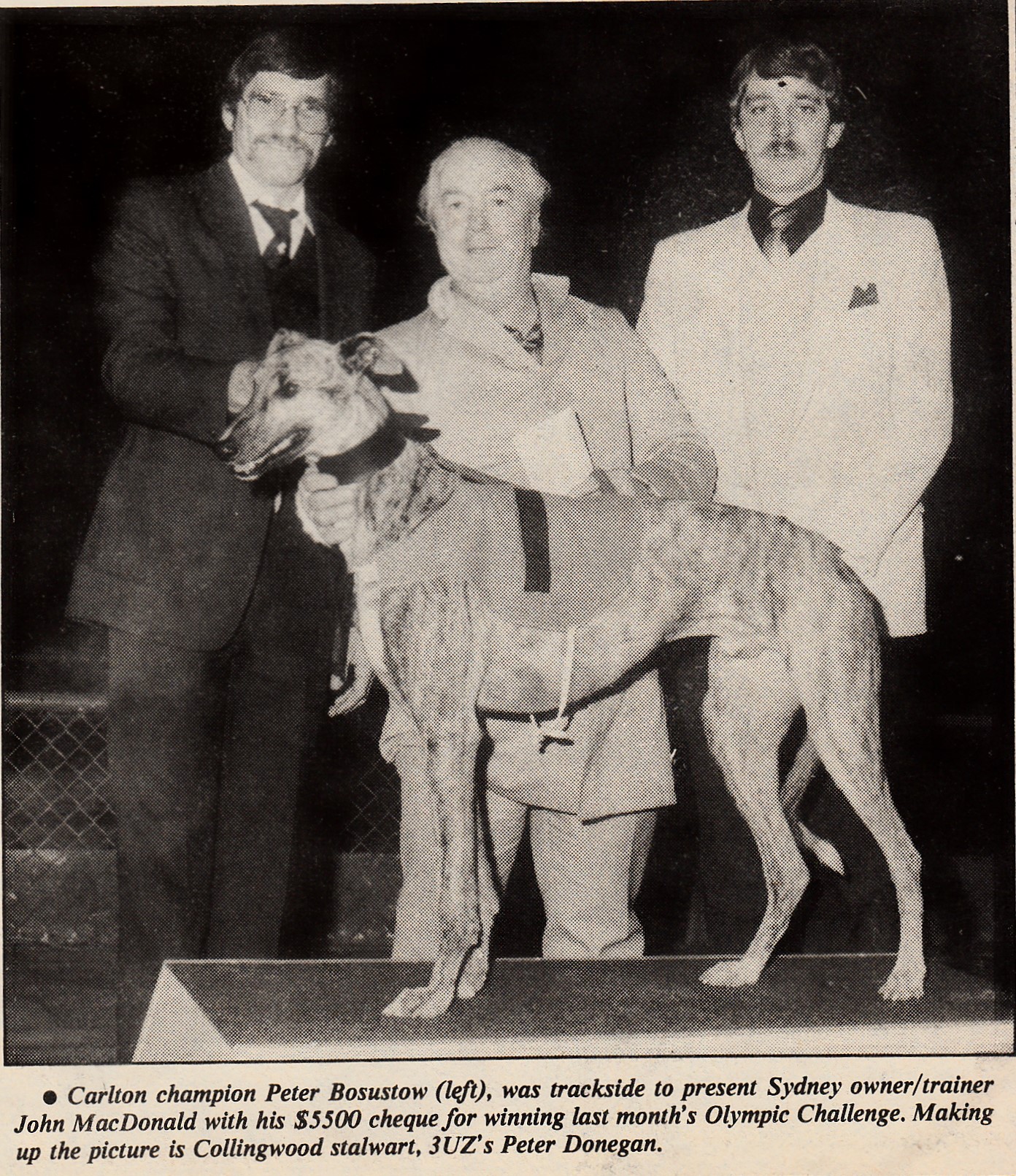 Glider’s Son and Peter Glider bred, reared, owned and trained by John McDonald of Camden. Early Copy from Camden Glider both outstanding chasers. What about the class of the field Peter Glider beat in the Interstate challenge. Good to see a pic of the “Buzz” for the Carlton fans.