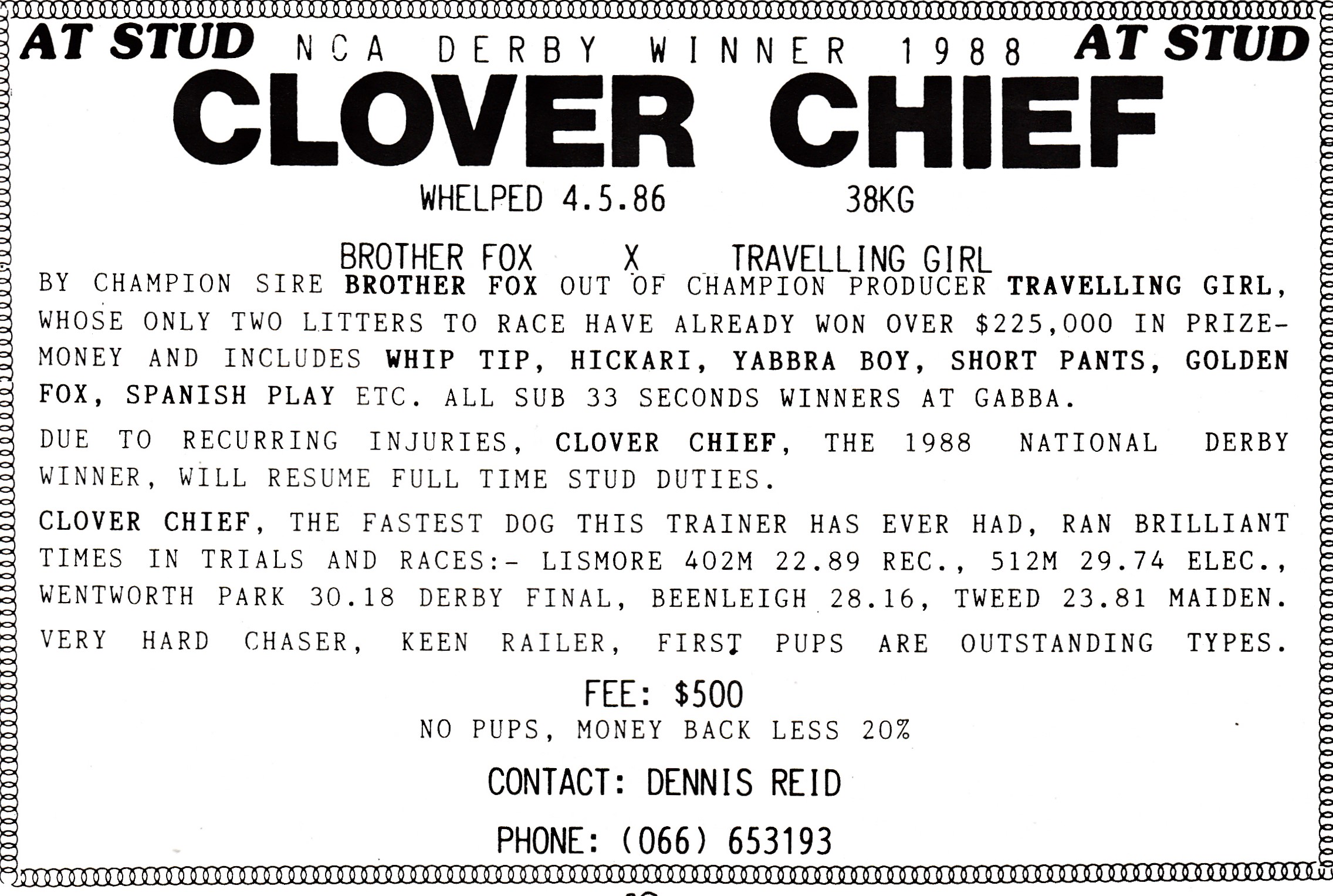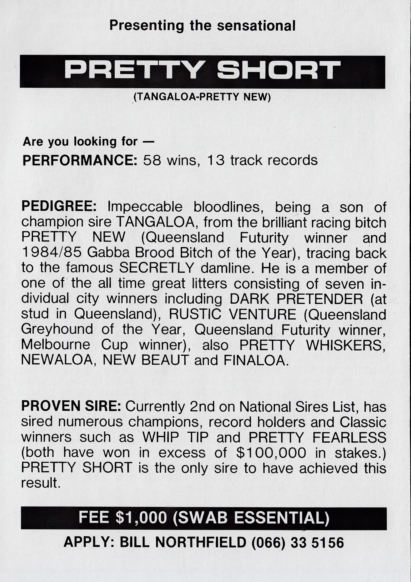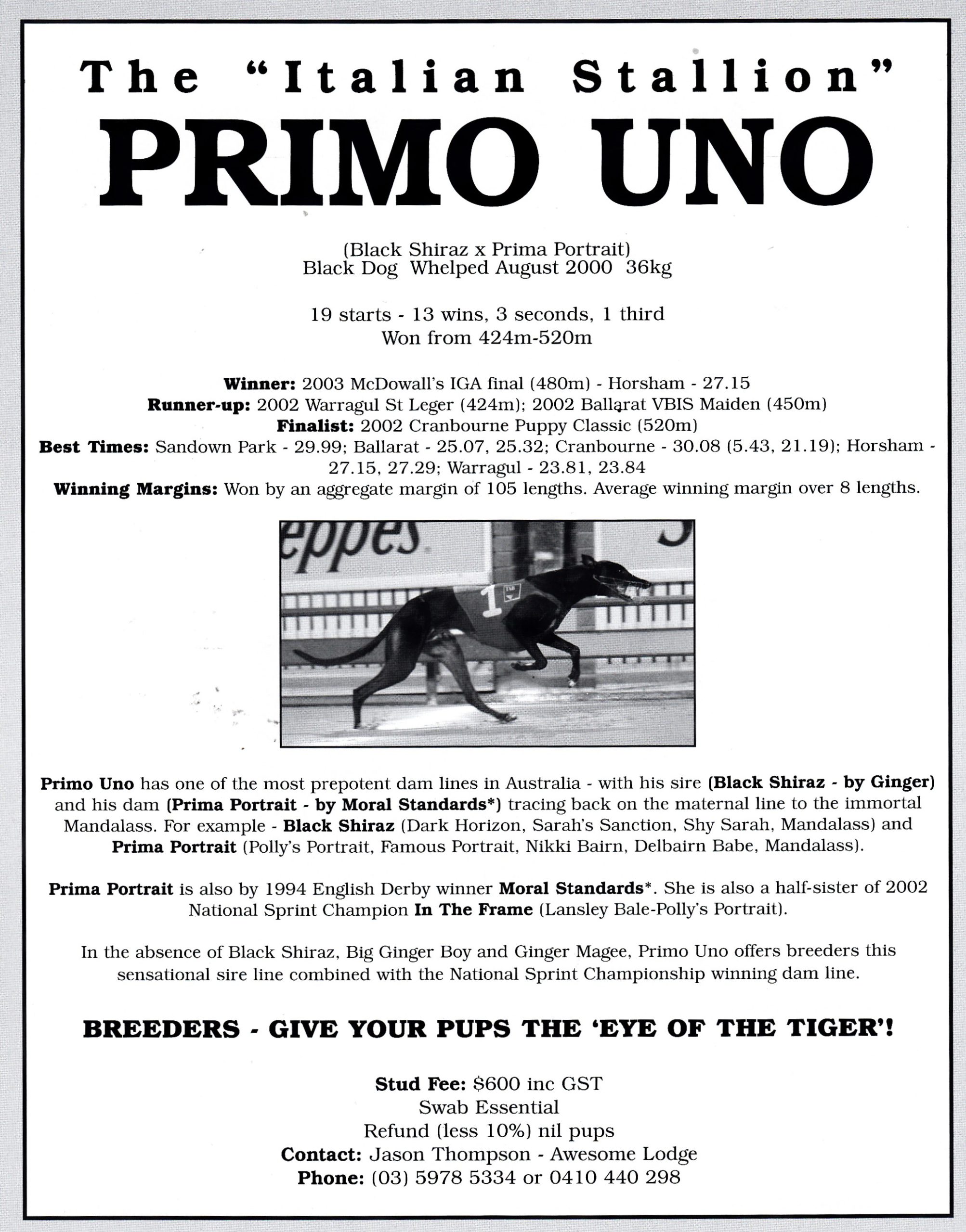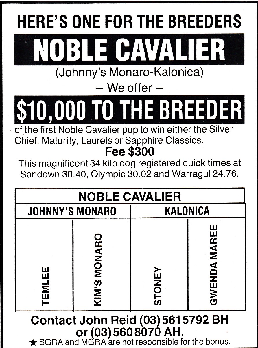 Here is some Stud ad’s I have found remembering a number of terrific performers and listing the highlights of their careers. Some great dogs.