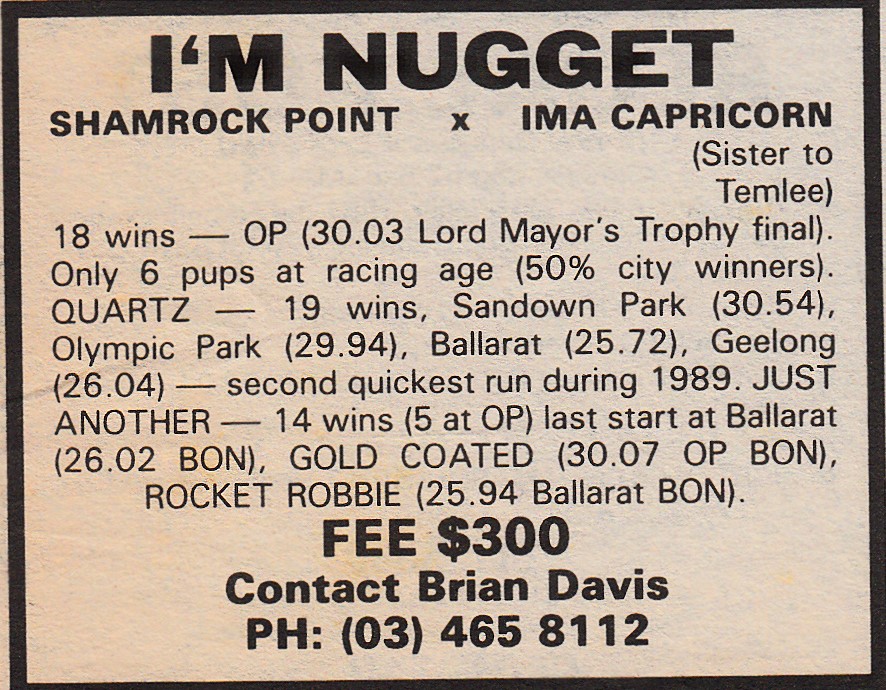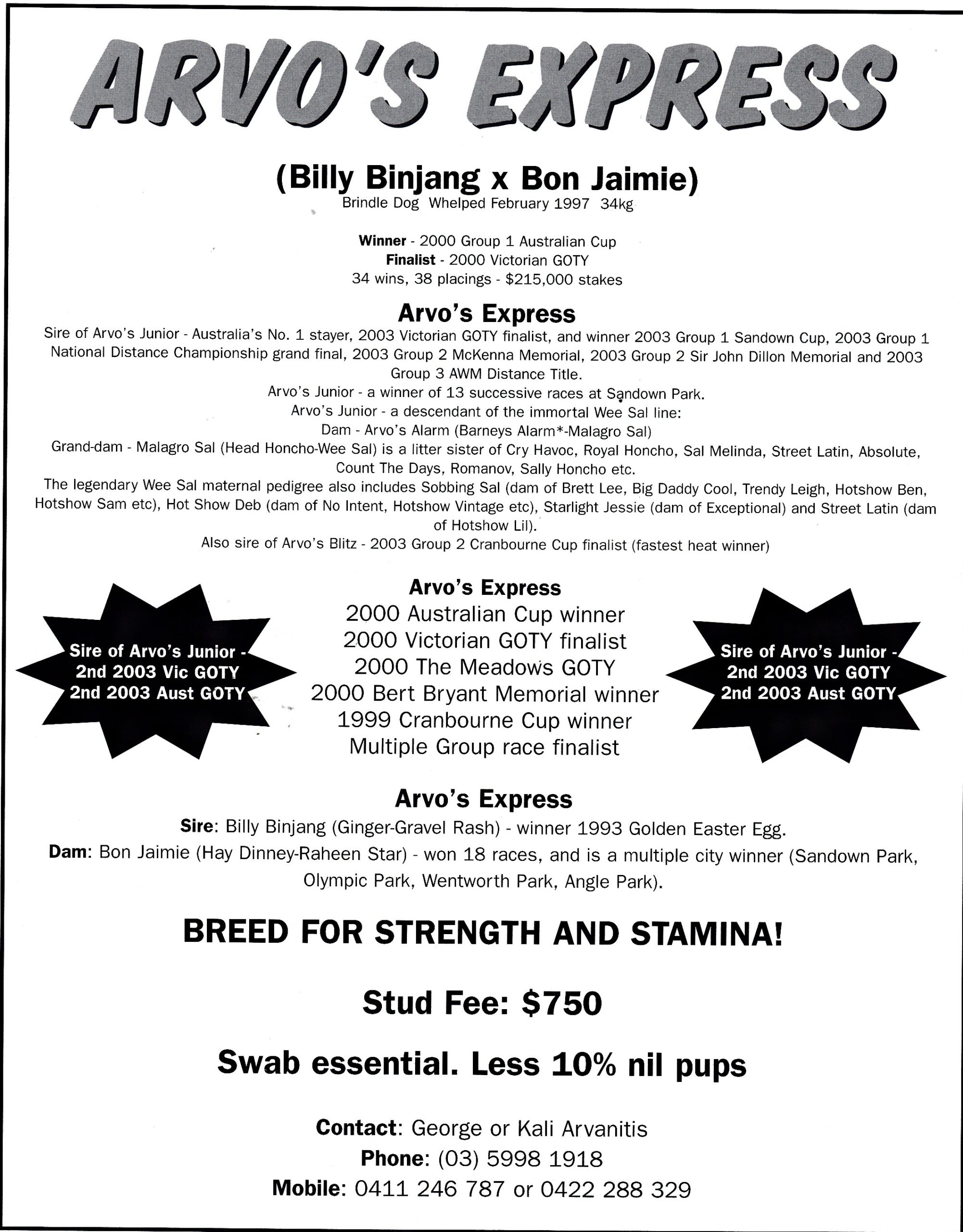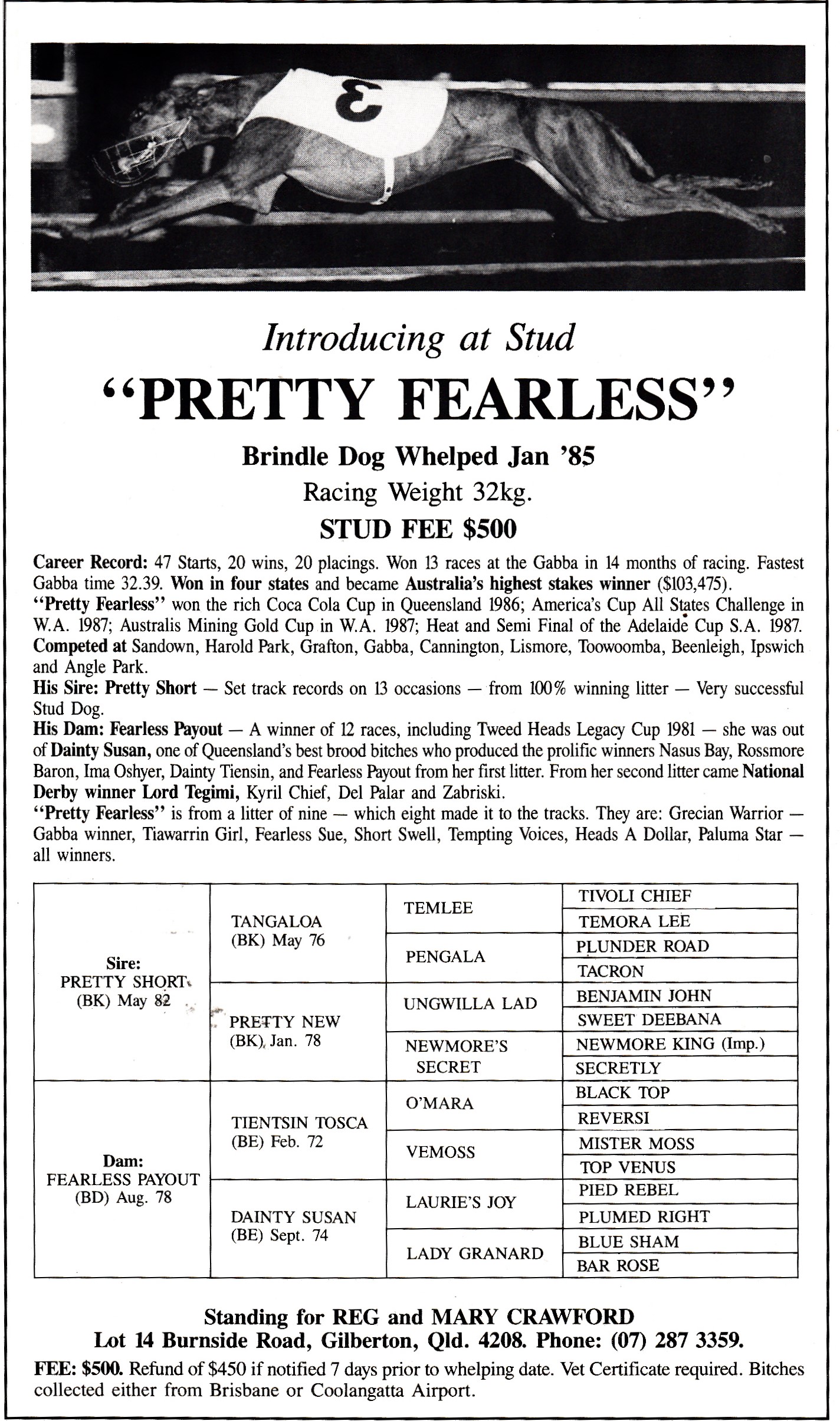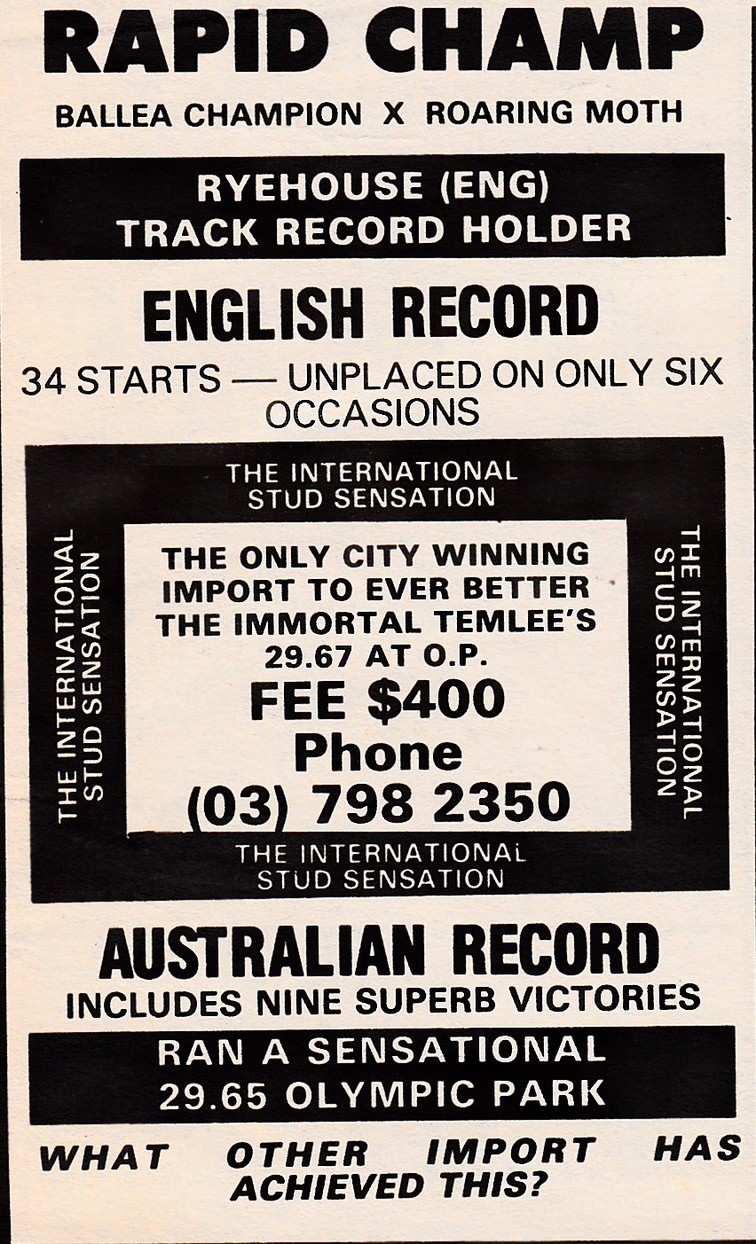Here is some Stud ad’s I have found remembering a number of terrific performers and listing the highlights of their careers. Some great dogs.