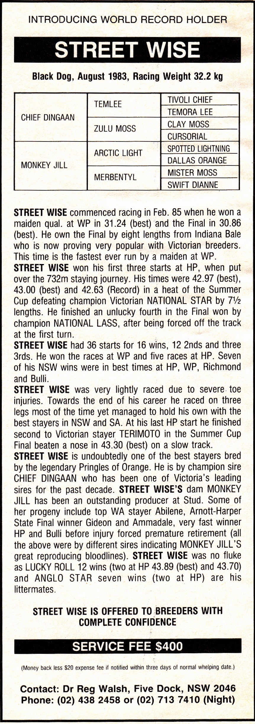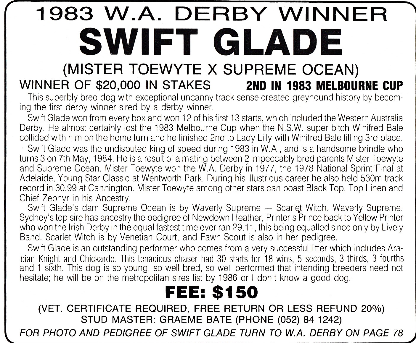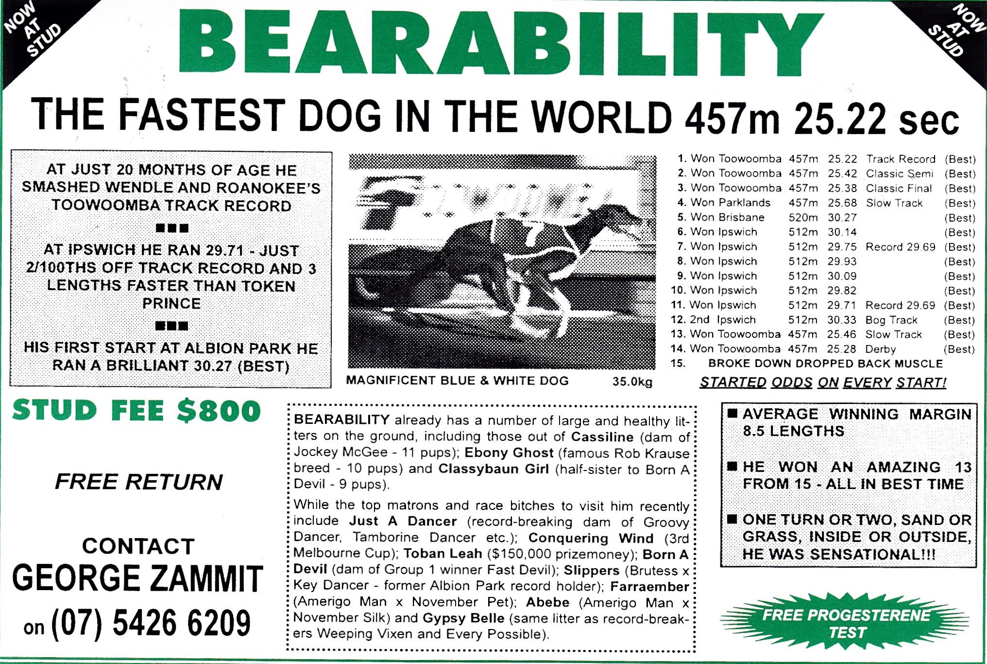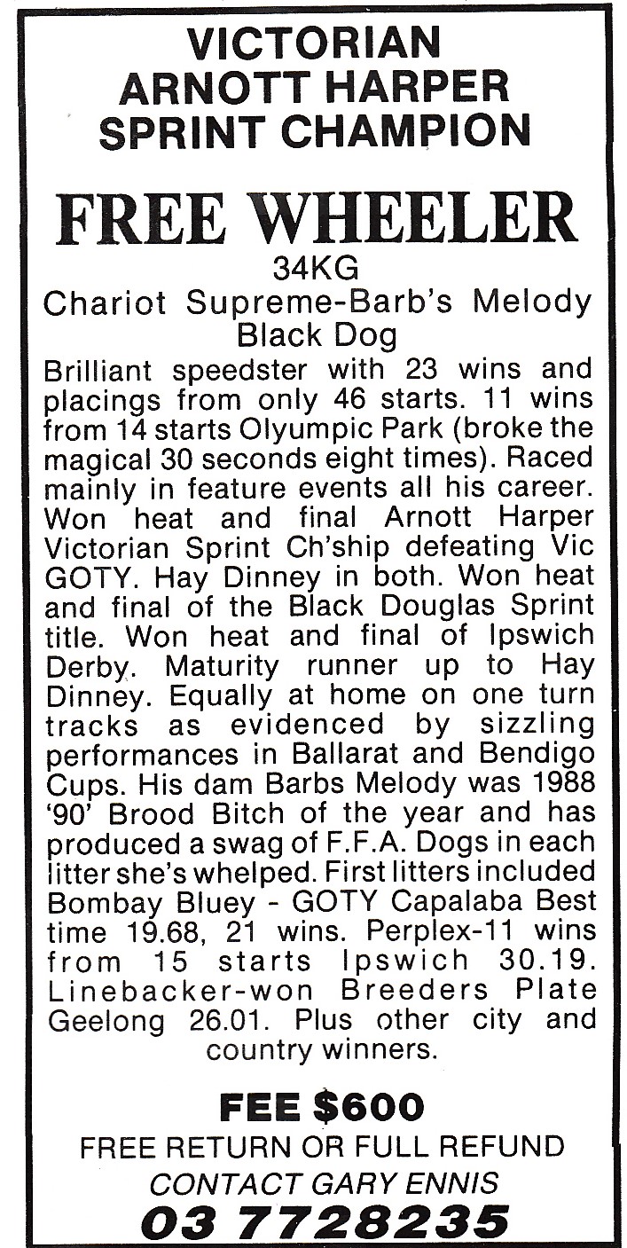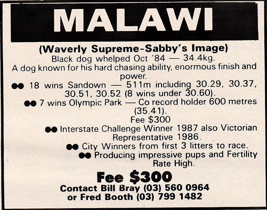Here is some Stud ad’s I have found remembering a number of terrific performers and listing the highlights of their careers. Some great dogs.