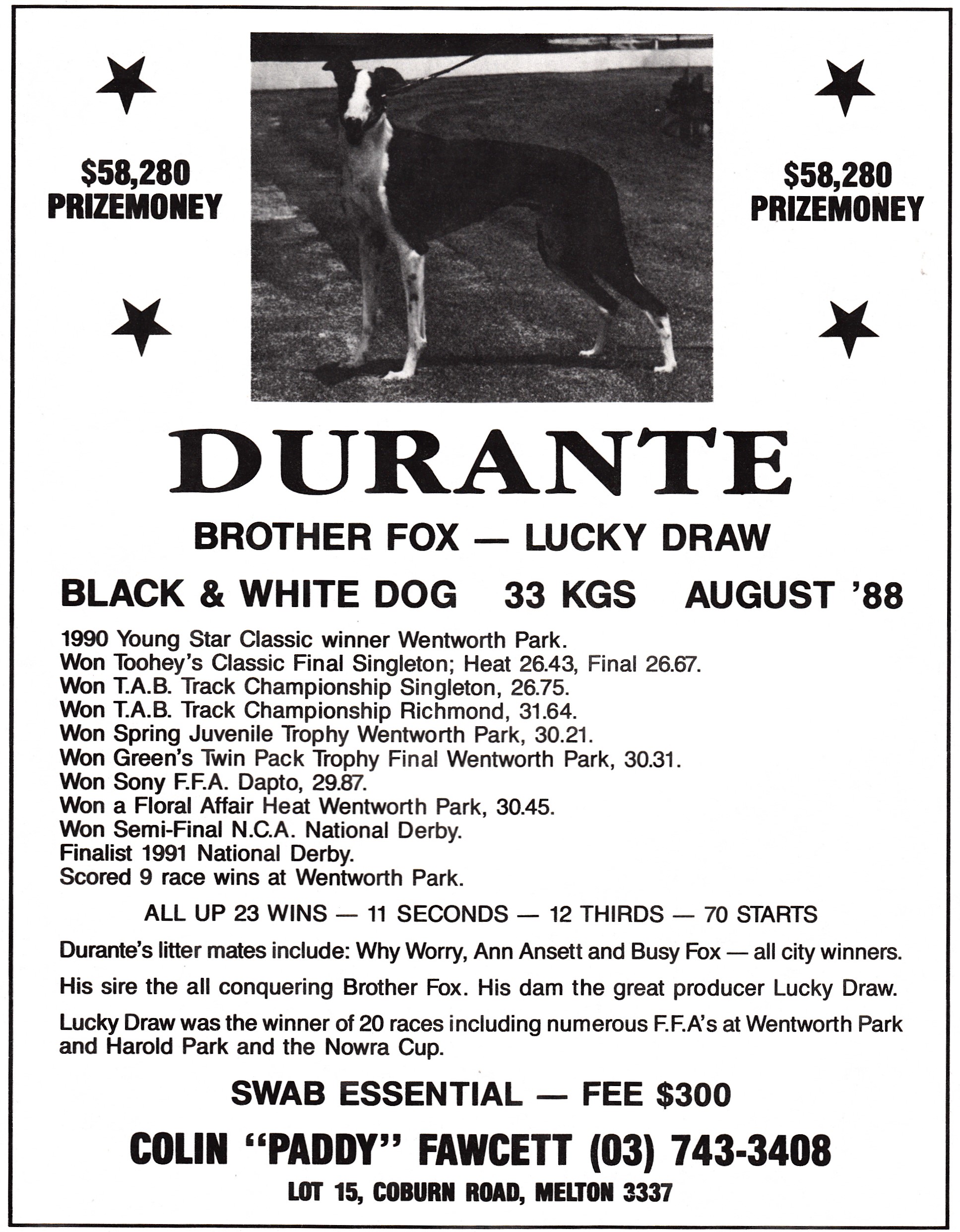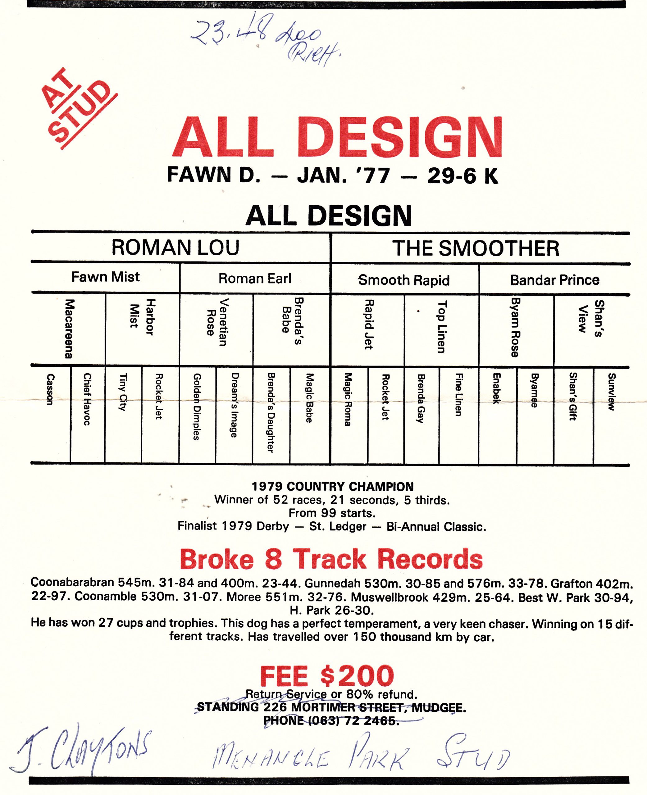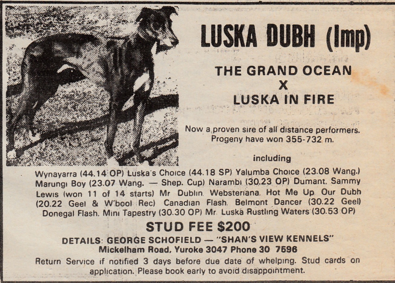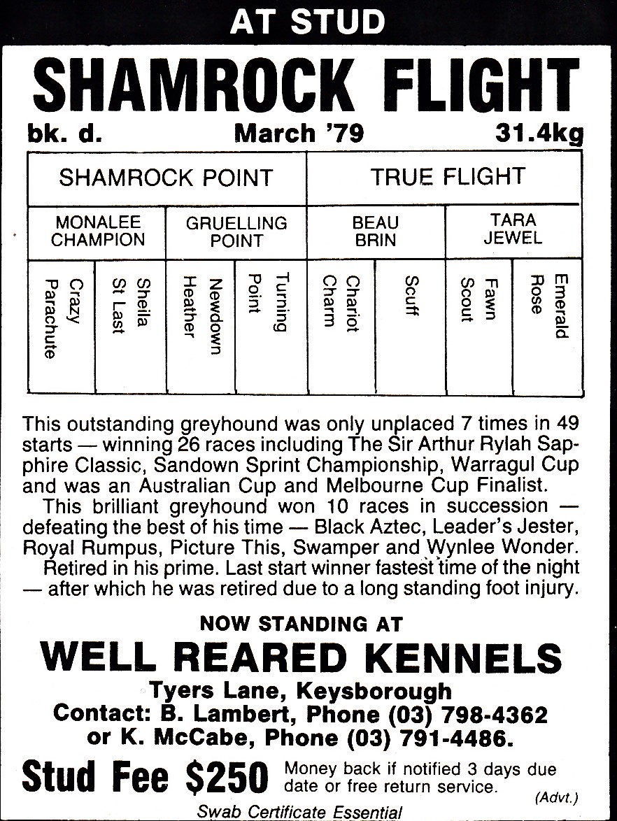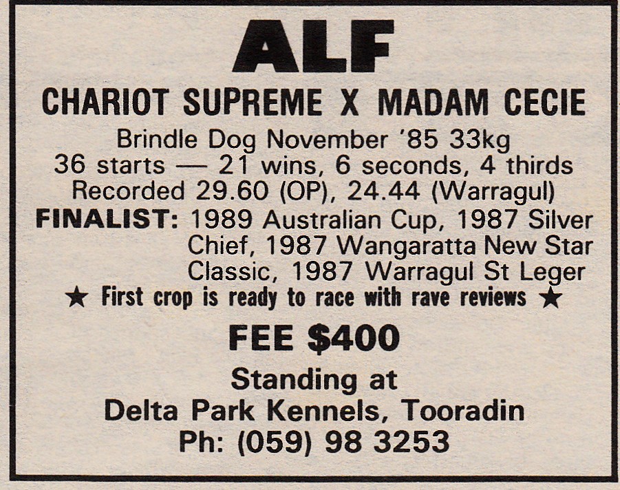 Here is some Stud ad’s I have found remembering a number of terrific performers and listing the highlights of their careers. Some great dogs.