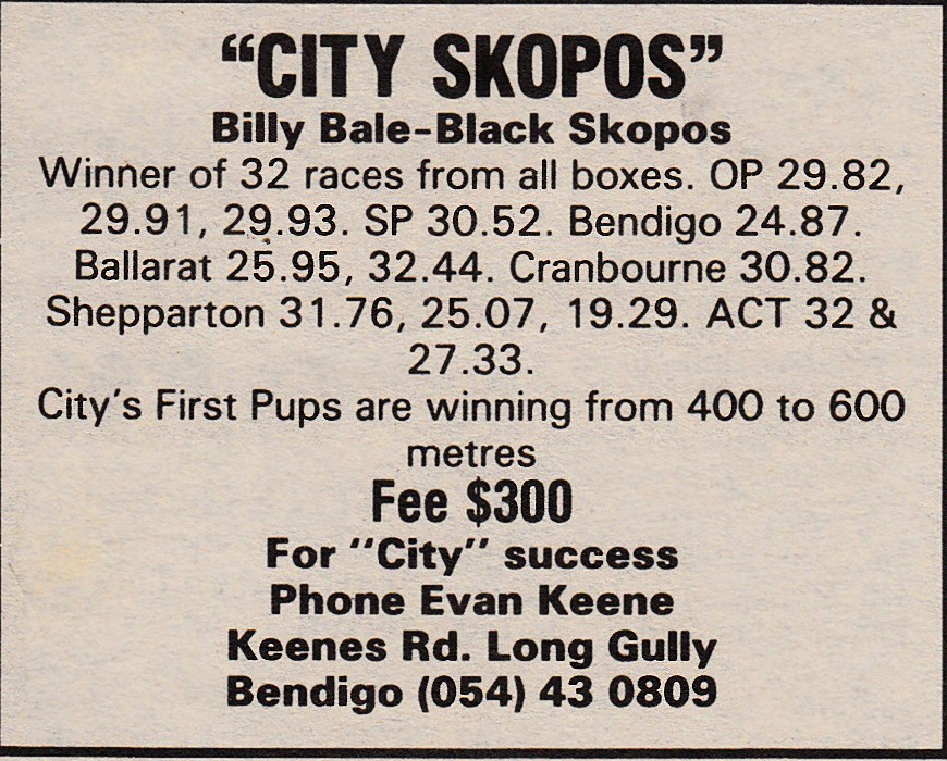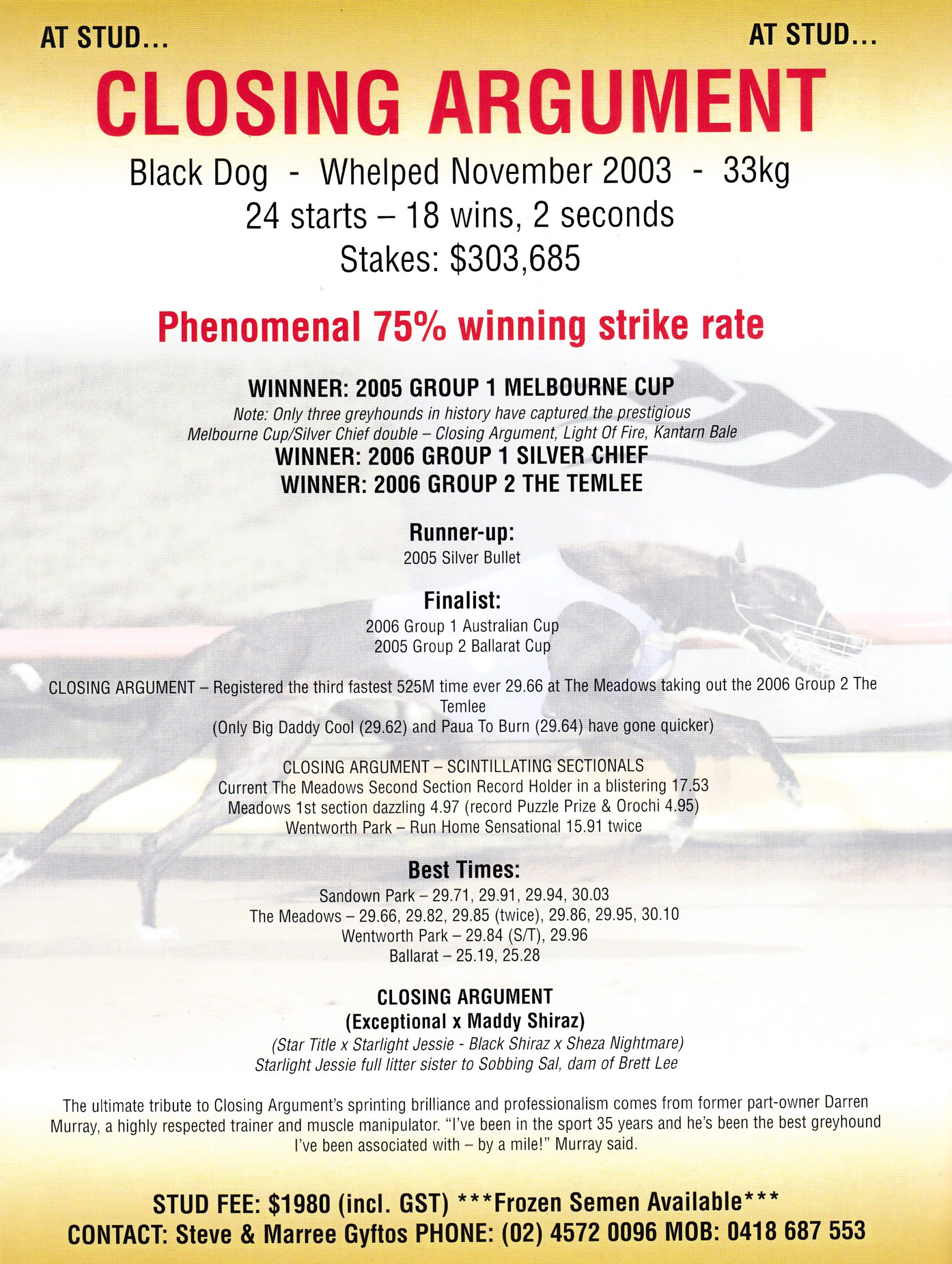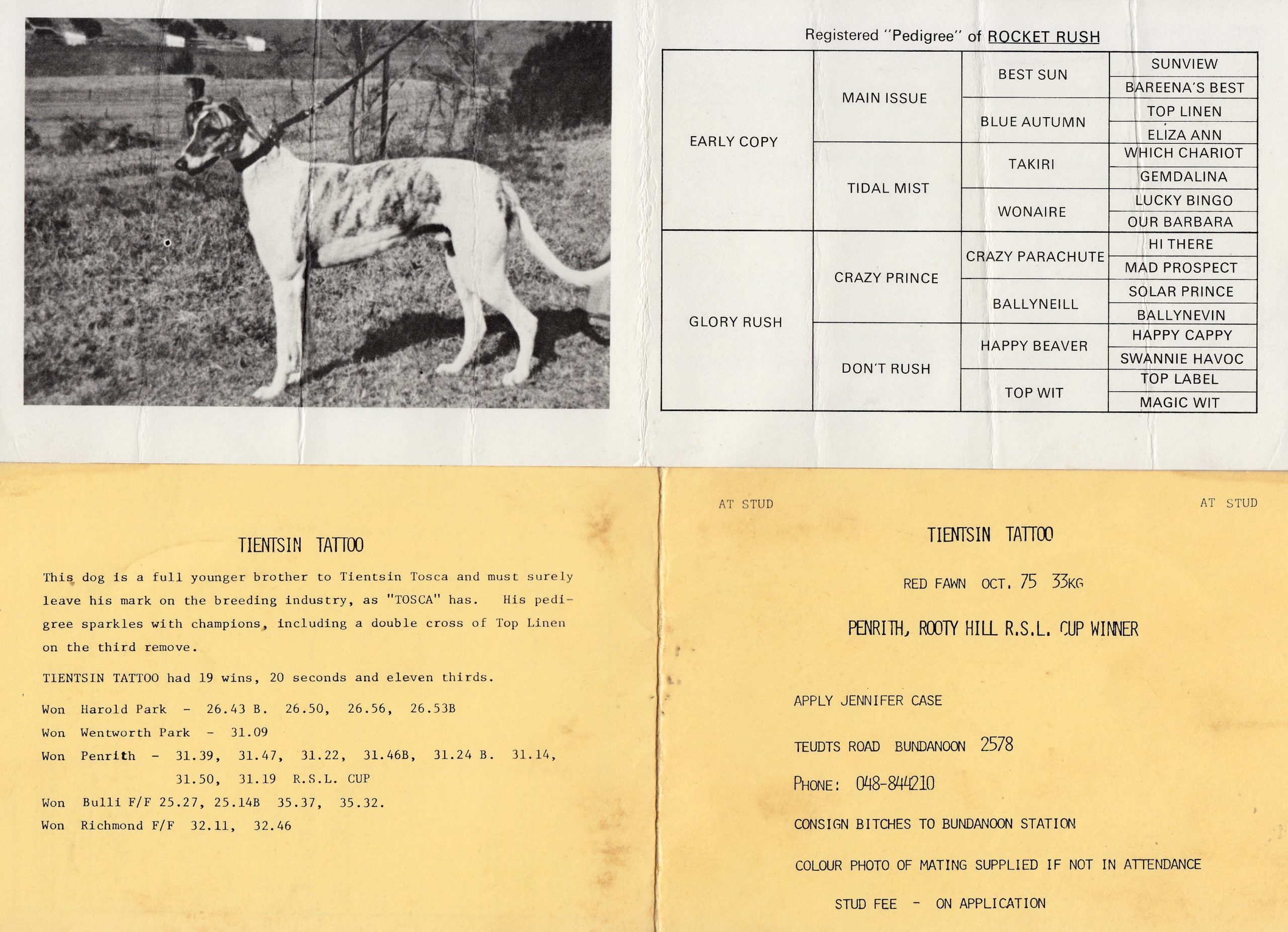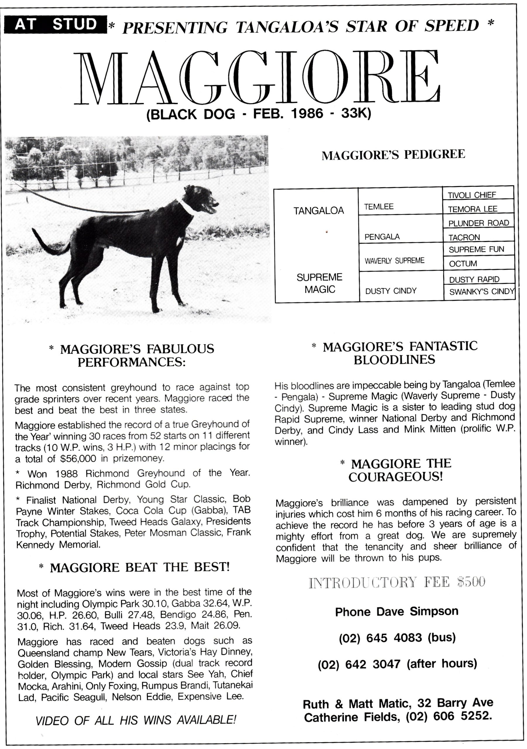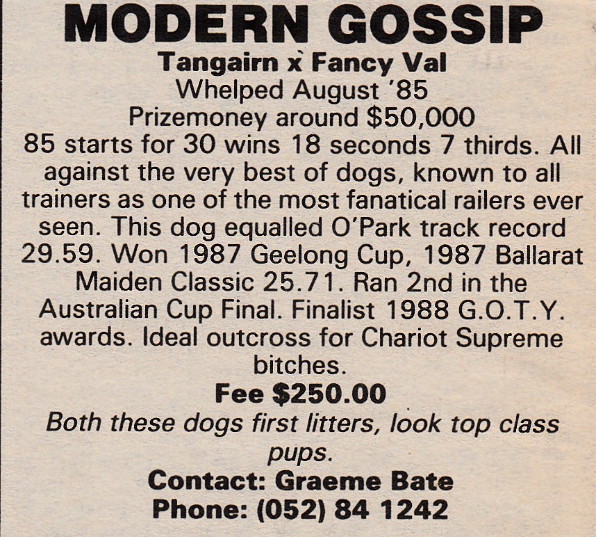 Here is some Stud ad’s I have found remembering a number of terrific performers and listing the highlights of their careers. Some great dogs.