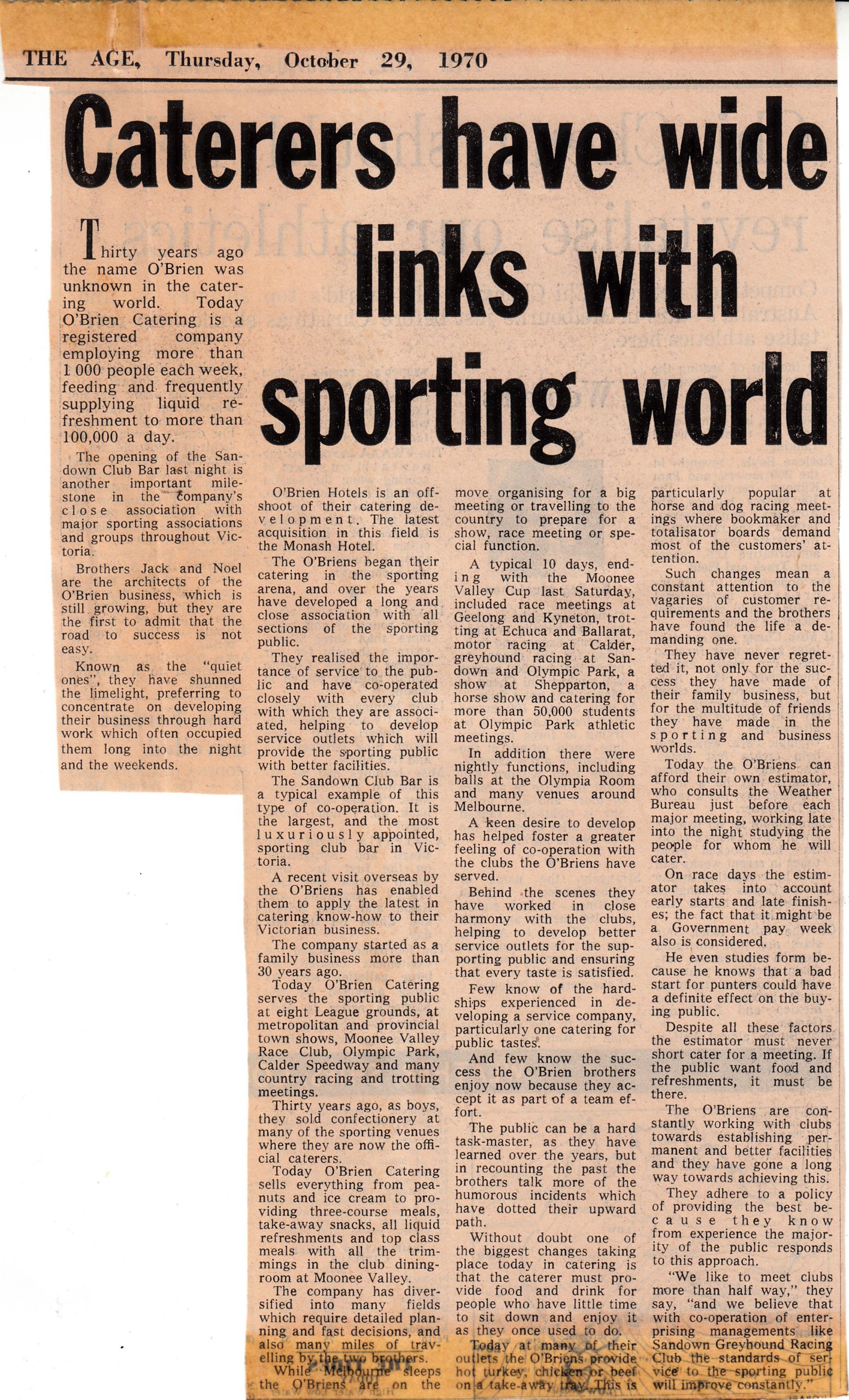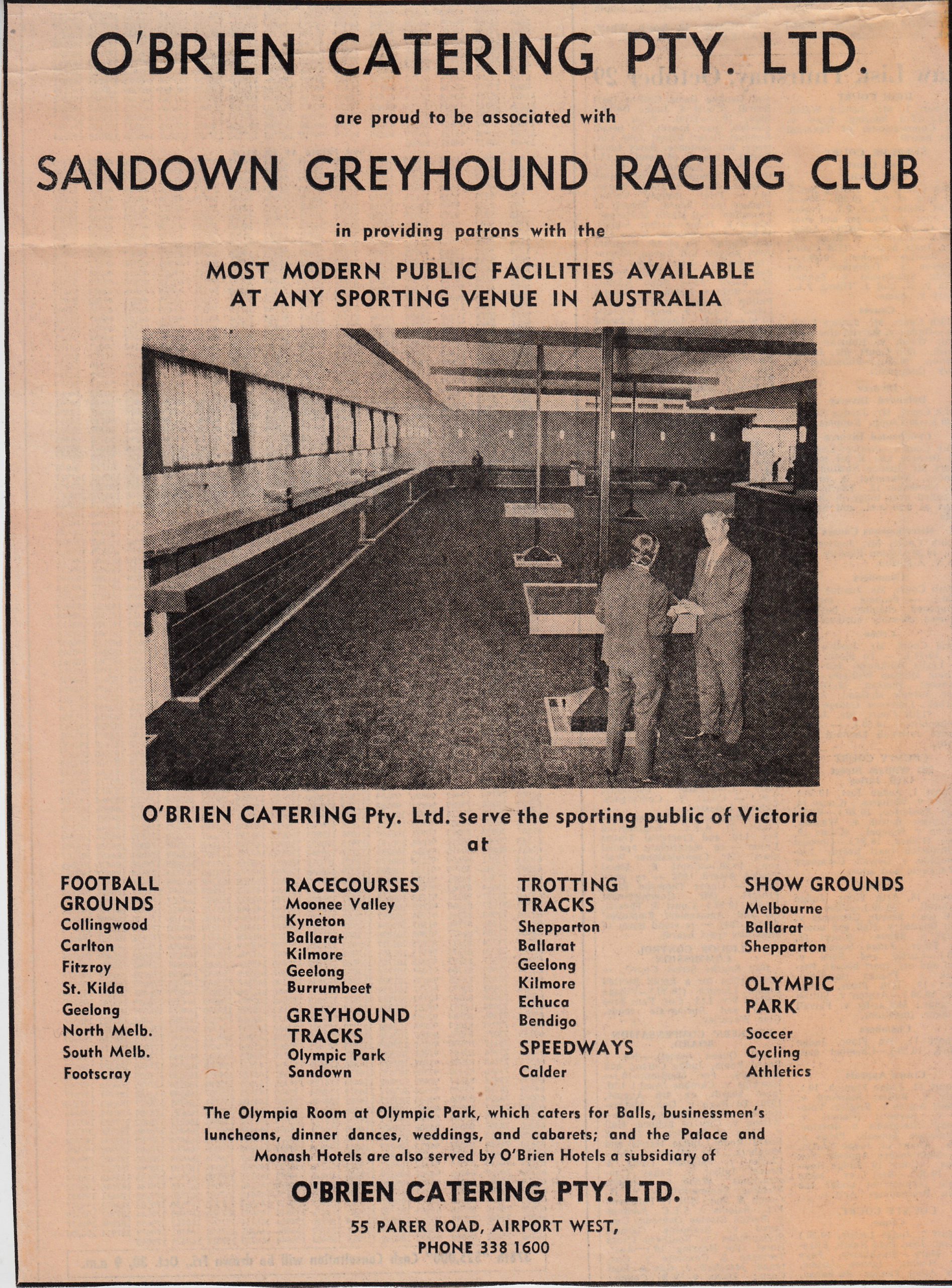 If anybody is wondering what Greyhounds Entertainment Gaming Venue was before it was renovated a couple of times since it was built and was called the Club Bar. The venue open in a blaze of glory and publicity on Thursday October 29th, 1970. I remember the night like it was yesterday. I was a bit past 17 at the time and the Club put on free beer between 6pm and 7 and we made the most of it. I will never forget the first race that night a hurdle as usual was won by a friend’s dog Rev’s Range at 25/1 and we were on. Second year apprenticeship wage for me at the time was $18.40. So, you can imagine what sort of night we had. I have many, many fond memories of nights in the Club Bar I remined star AFL great Dermott Brereton of his regular appearances at the Club Bar when we talked at the Warrnambool Cup in May this year. He was one of a number of sporting personalities that were seen in the famious venue. Here are some classic stories from a Newspaper Special lift out produced by the AGE daily on October 29, 1970.