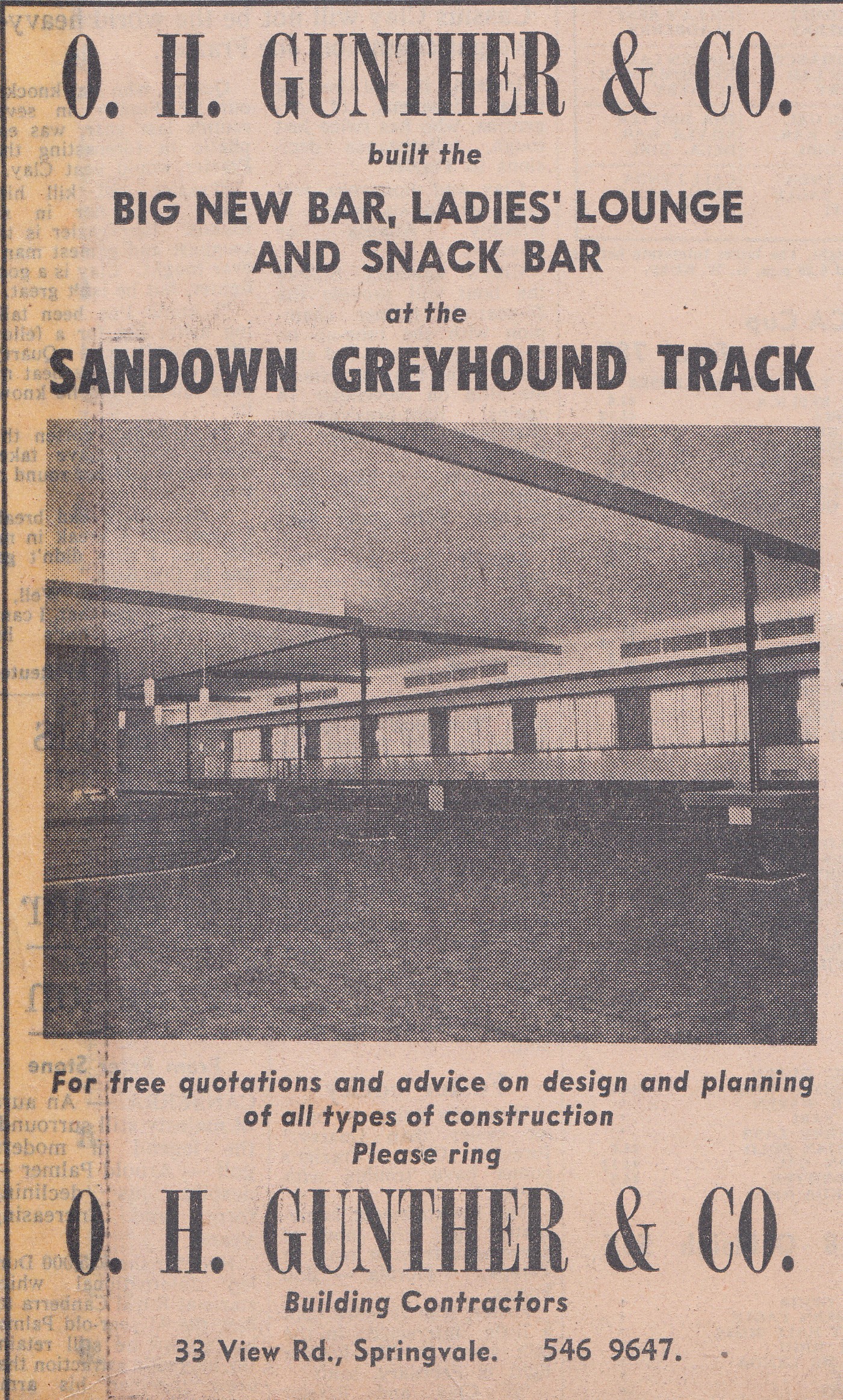 John Stephens – Interesting to note the ‘ladies’ lounge was a must have as then (a) most ladies did not drink beer and (b) if they did…was certainly not in a ‘public’ bar. Also worth remembering that the builder ‘Gunther’ lived in the street (now named after the family) running parallel to the grandstand. I might have this wrong but as I recall 6 o’clock closing of bars (still in place in 1970) meant the only legal place to get a beer was at a registered club?