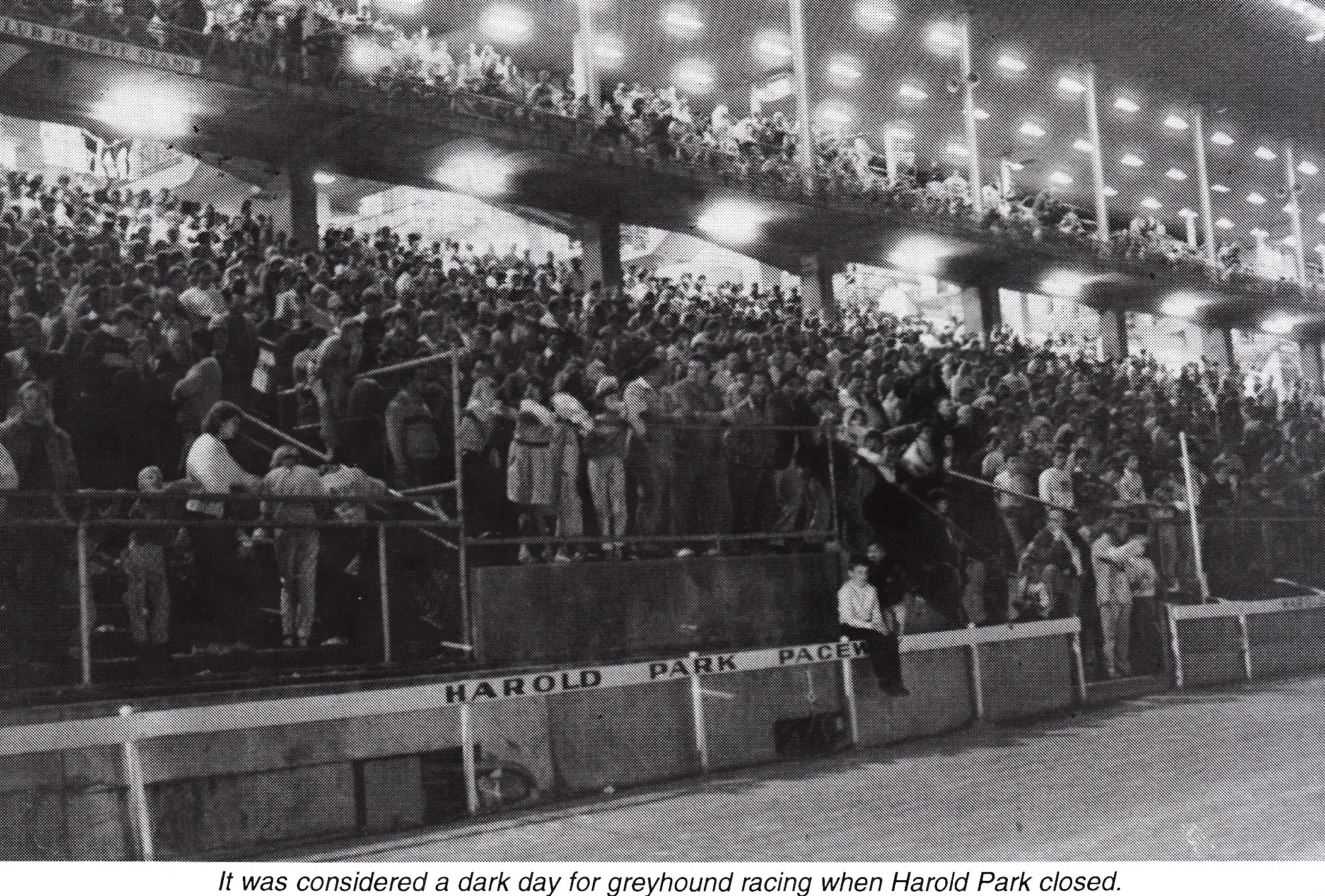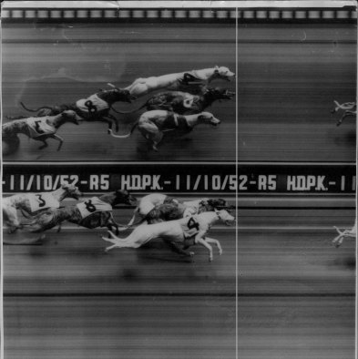 “First photo-finish dead-heat at Harold Park dogs since the camera was installed on September 3 occurred on Saturday night. The dead-heat was for second between Gwydir Boy (4) and Michael’s Son (6) in the Harold Park Stake. The winner, The Cashier, is not in the picture.” (From the SMH, October 13, 1952)