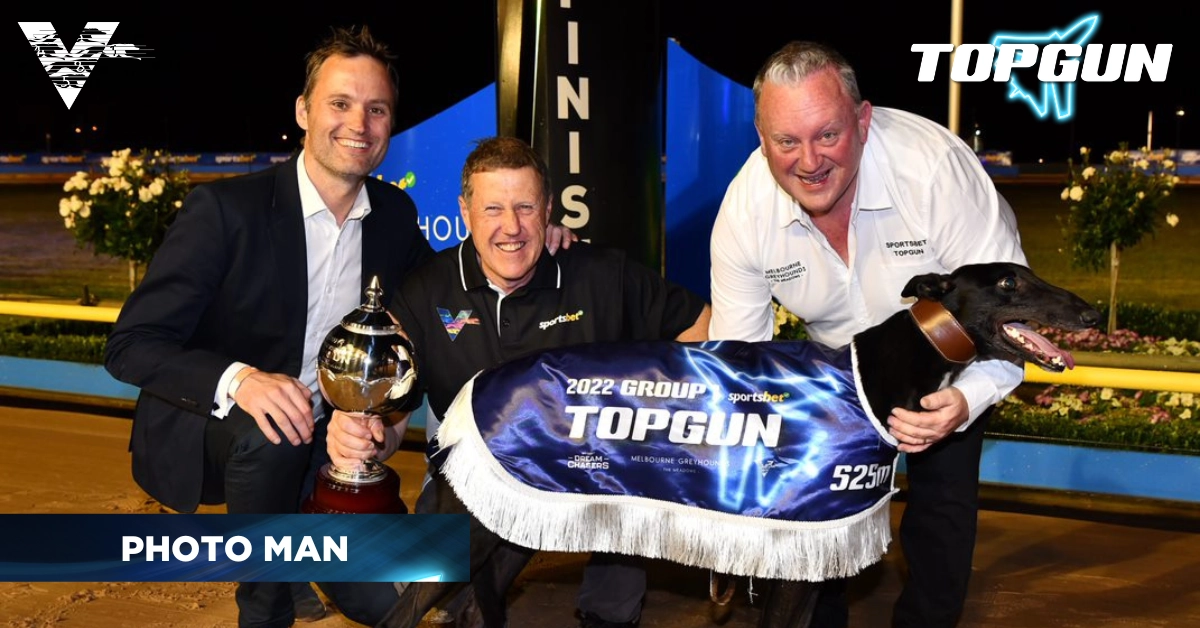 2022 Photo Man completed an incredible Topgun double for reserves with an upset all-the-way victory in the $233,250 Group 1 Sportsbet Topgun (525m) at The Meadows on Saturday night. Trained by cousins Gavin Clifton and David McKenzie at Tynong North in Gippsland, Photo Man was selected as first reserve for the Topgun and was elevated into the field on Wednesday following the scratchings of interstaters Goods Odds Cash and Orchestrate. Gaining a start from Box 8, Photo Man was a $20.20 outsider in the invitational sprint, with superstar Wow She’s Fast $2.50 favourite, despite an awkward Box 5 draw. “I don’t know what to say. From not being in the race, to being in the race, to drawing the car park.” Having his first start since running third in the G1 Adelaide Cup on October 7, Photo Man showed great speed to cross the hand-picked field from the outside alley and he scooted clear in the back straight, as headline act Wow She’s Fast was shuffled back to the rear of the field. After opening up a huge mid-race lead, Photo Man defeated Million Dollar Chase hero McInerney ($13.50) by two lengths in 29.91sec, with Western Australian Vice Grip ($19.60) running third.