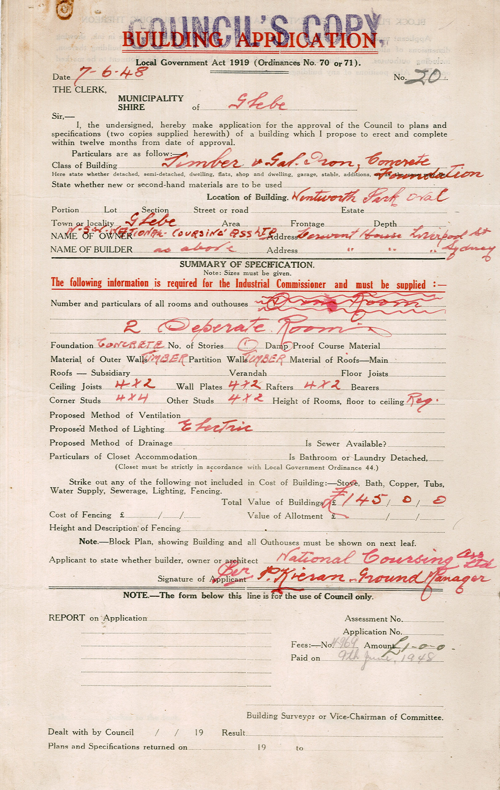 Below are the original plans and draws of Wentworth Park before it was built in 1948.