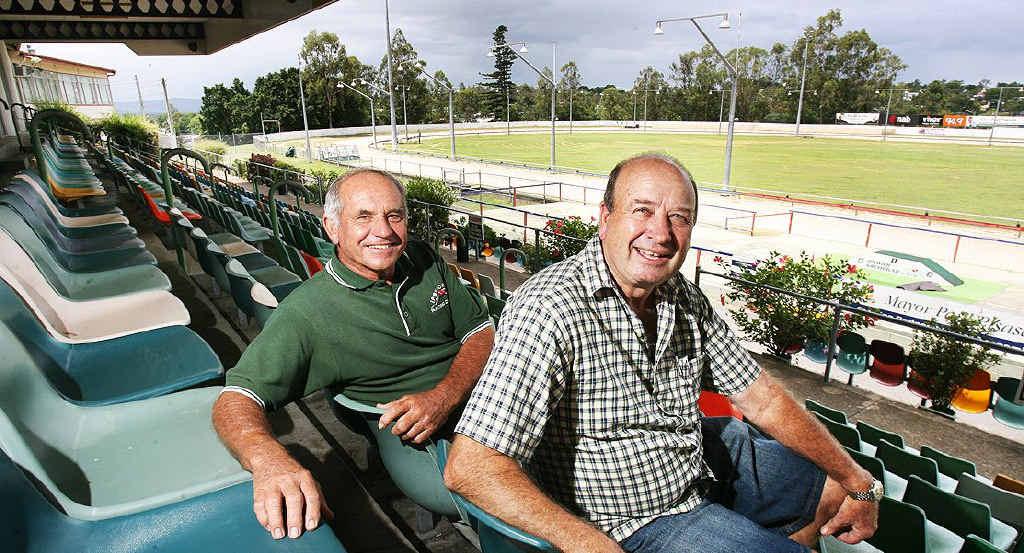 Ipswich Greyhound Racing Club officials Merv Page (left) and Rob Essex. Picture: Rob Williams