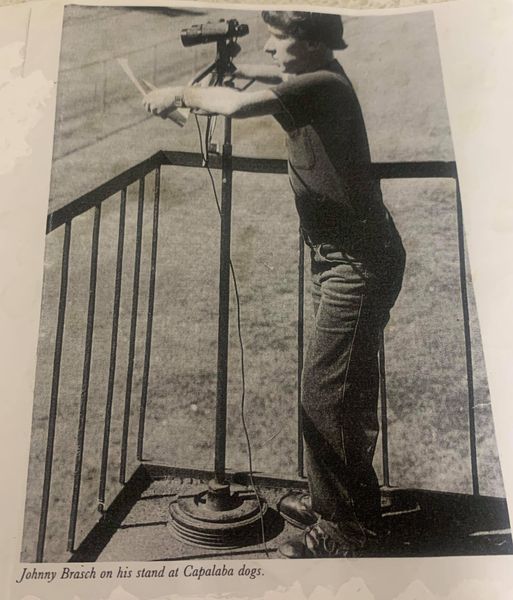 Little did Johnny Brasch realise at the time (he was then aged 17) that he was moving closer to the realisation of his dream of becoming a member of the “They’re racing!” clan. He had become acquainted with many members of the sporting media, and this helped him into a position of calling at the Capalaba greyhound meetings.