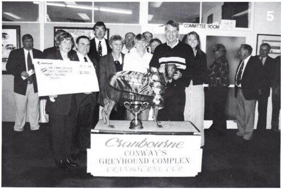 Lightning Boy (Chief Dingaan x Lively Millie) wins the 86 Traralgon Cup top field Regal Post second Shining Chariot third who he ran fourth to in the 87 Cranbourne Cup after winning that race in 1986. 54 Starts 19 wins and 20 placings $20,997. I think that’s our Marg in charge. Above shot after the 1986 Cranbourne Cup I am in the back corner of the pic acting as MC which I did for over 15 years at Cranbourne Cups.