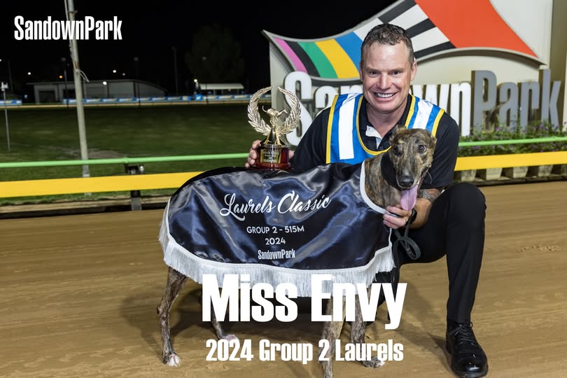 Brilliant West Australian sprinter Miss Envy joined some rare company after her outstanding performance to win the time-honoured Sandown Laurels on Thursday night. First run in 1964 the race has been the yard stick for bitches as over the years many of the finalists have gone to curve out brilliant careers and also make a significant mark in the breeding barn. Miss Envy became only the third bitch in history to win the Laurels and the National Sprint Championship. She joined Hall of Famers Winifred Bale after she won the Laurels in July 1982 and the National Sprint at Harold Park in 1983. The other superstar was fellow West Australian voted last weekend as the best WA Sprinter of the last 50 years the mighty Sandi’s Me Mum. She won the Laurels in July 1989 and the Sprint Championship on home soil at Cannington the same year returning to Sandown in 1990 to win the Sprint title for a second time.