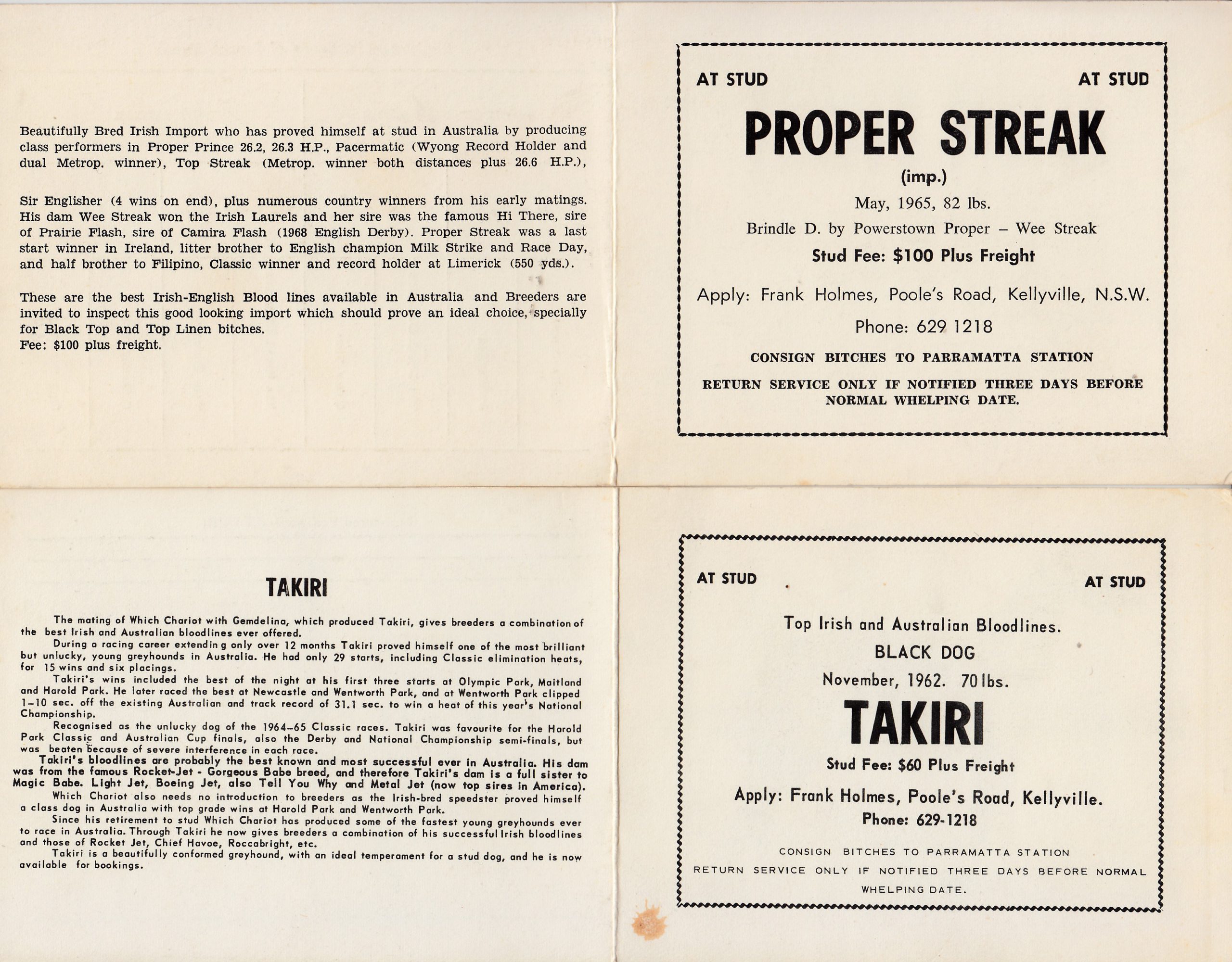Here’s are some of PA’s Stud Cards. Tenderhook, Takiri, Proper Streak, Which Chance, Olympic Eagle, Pancho Country.
