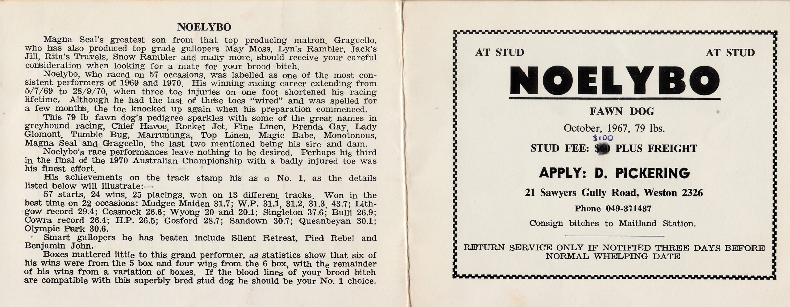 I think you will find contrary to what Phil said ,Noelybo was bought and owned later in his career by the likeable Charlie & Doreen Pickering and named after the great Noely Bowman