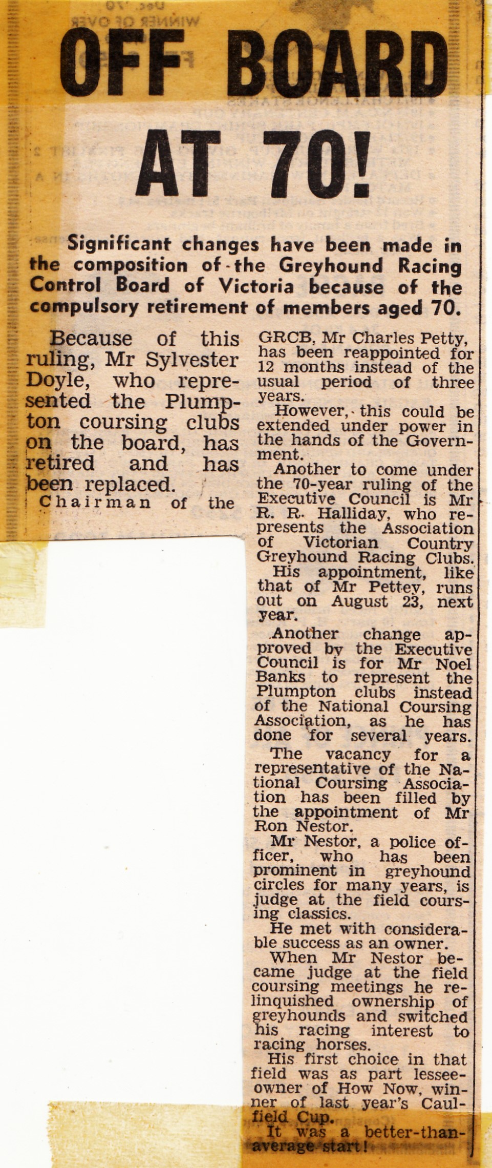 Having just turned 70 a couple of weeks ago if I was involved at Administration level back in 1977 which I was in my local Football Club. I would have been thrown off the Board as was the law in those days in Victoria. At club level you had to gain 75% of the vote at an annual meeting to stay on the Board, plenty didn’t including big names the late Henry Harrison and the late Fred Abel. The Victorian Labour Government made it ageless in the early 2000’s so if you still hold the vote you can stay on board forever so to speak.