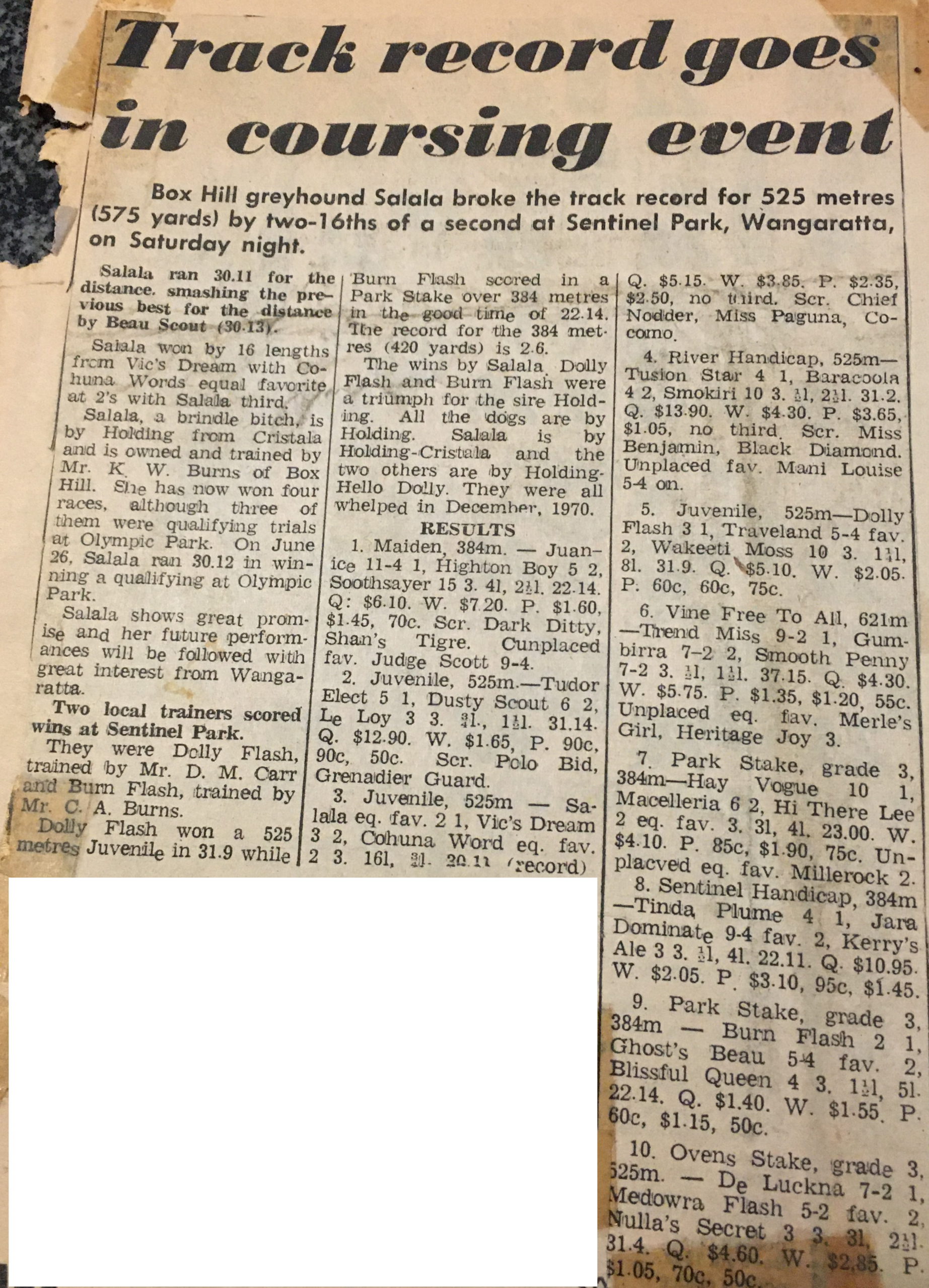 Howard Gray– Syd Hall what a great breeder/trainer, all those top dogs they bred out of Fancy Finn