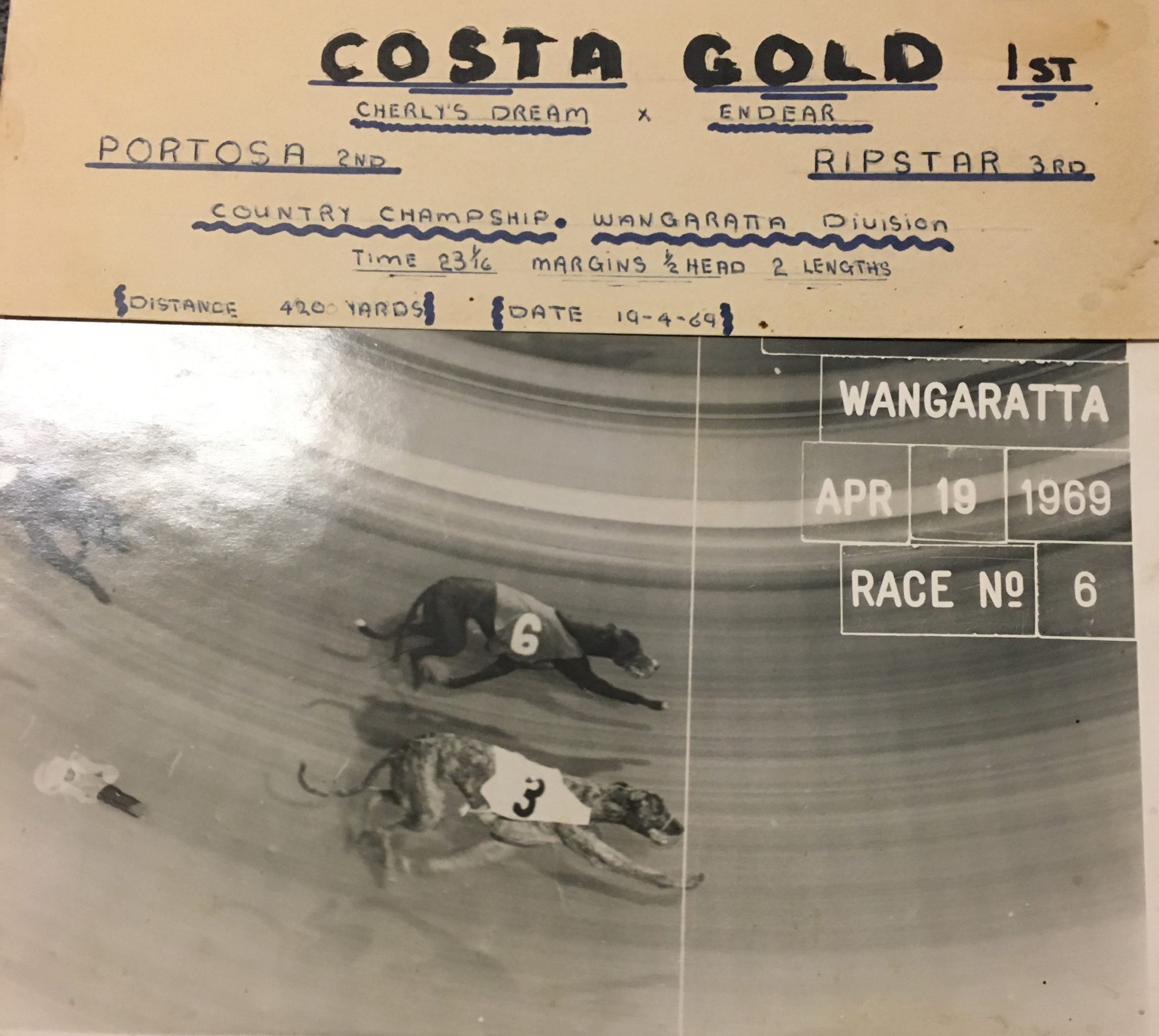 John Carr of the North East send these clippings from the old Wang track and a Photo finish of a winner he had there with his father in 1969. Costa Gold.