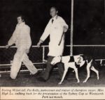 Another champion stayer Miss High Lo. Three members of the Guildford Leagues Club Les Kelly, Jack Myers and John Starr...