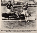 Hurdle exhibition at Wenty with Leek brothers. The fawn dog is Rare Chief sensational hurdle for John Leek...