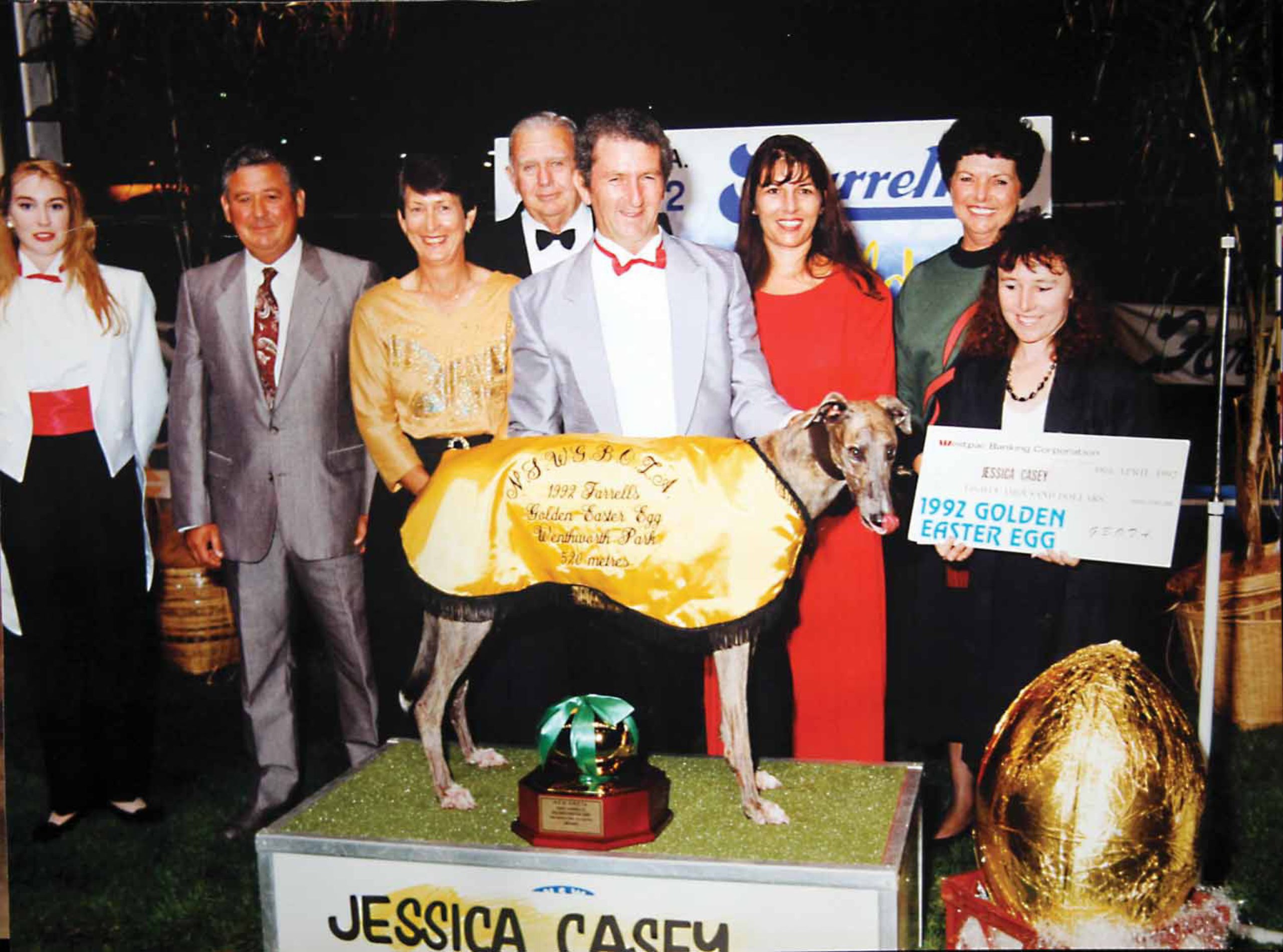 Champion chaser Jessica Casey (Amerigo Man x Osti’s Shadow) bred by legendary breeder Ted Doss. Raced by Cheryl Newcombe and trained...