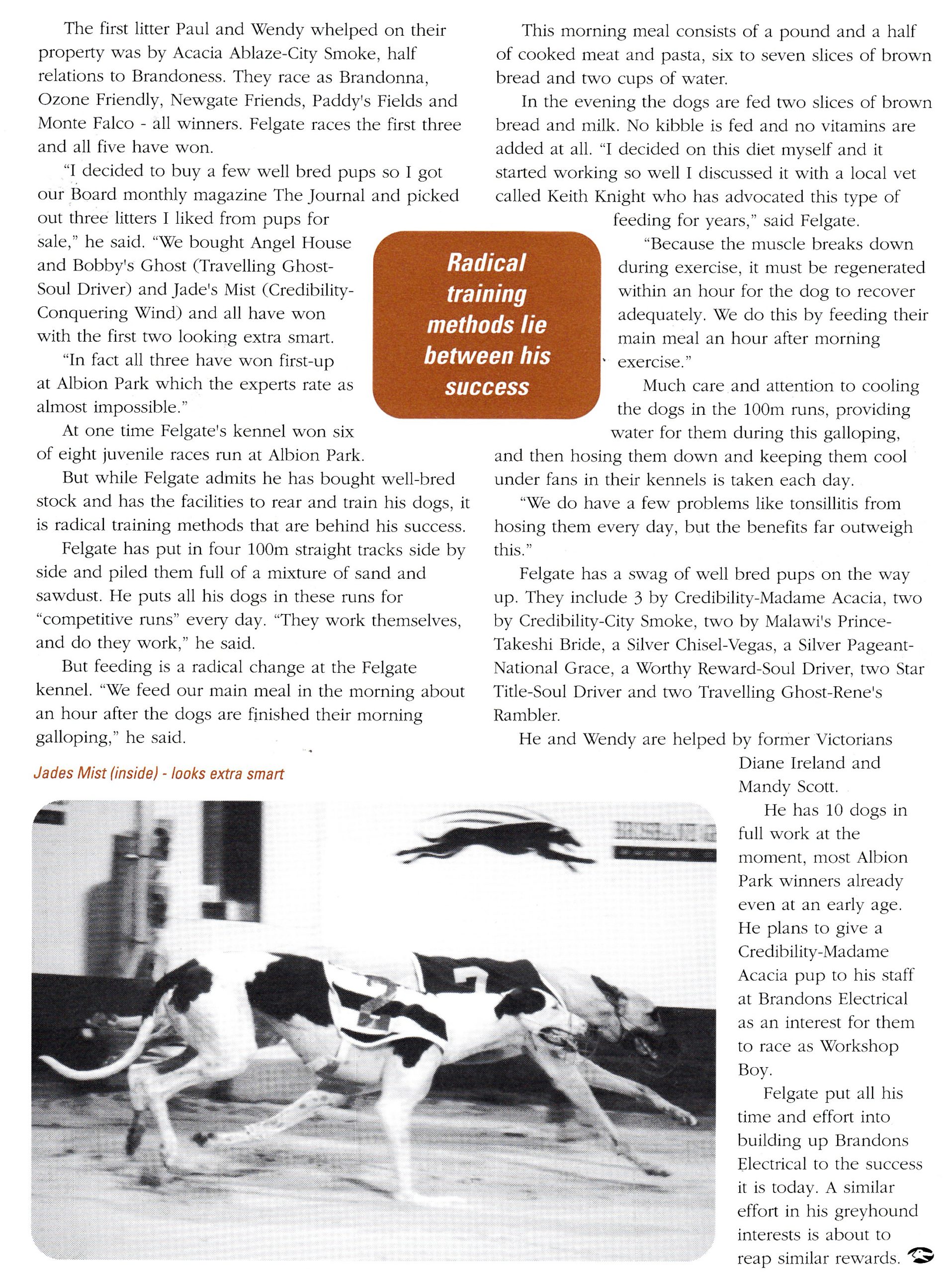 Speaking of Paul Felgate here is a story by David Brasch of how got into Greyhound Racing. Plus, another in regard to his friendship with one of my star boarder the legendary Queensland trainer Ron Ball.