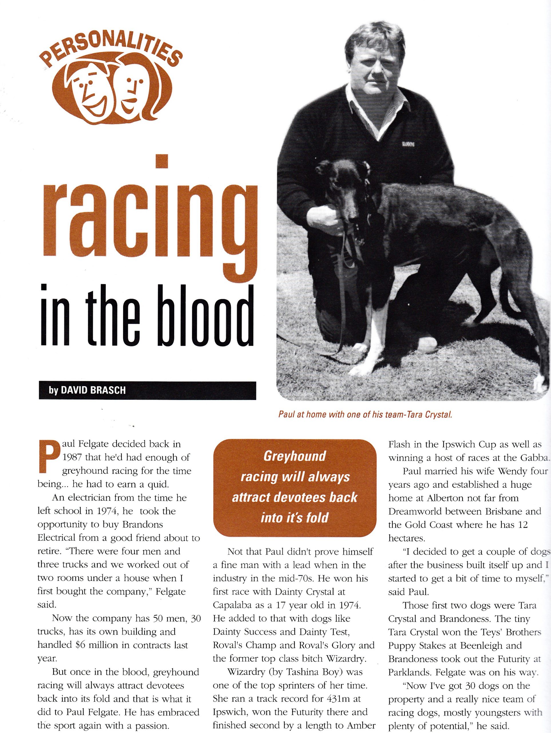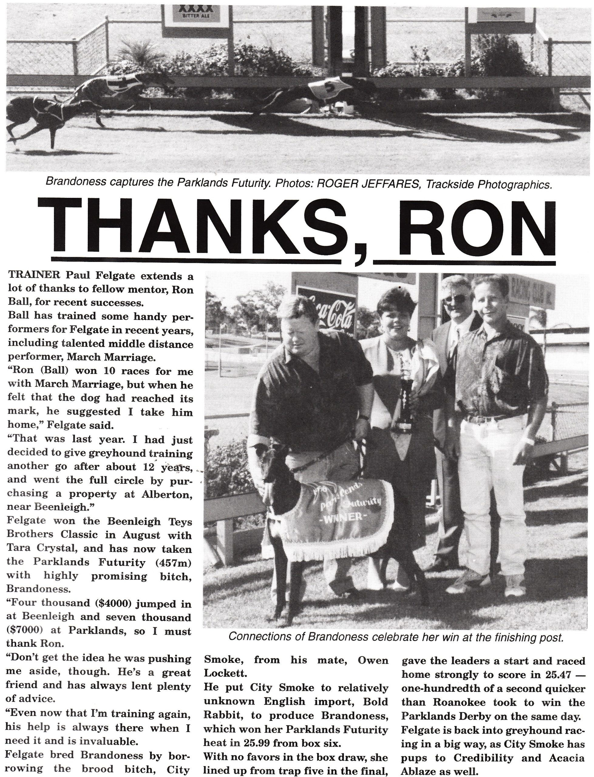 Speaking of Paul Felgate here is a story by David Brasch of how got into Greyhound Racing. Plus, another in regard to his friendship with one of my star boarder the legendary Queensland trainer Ron Ball.