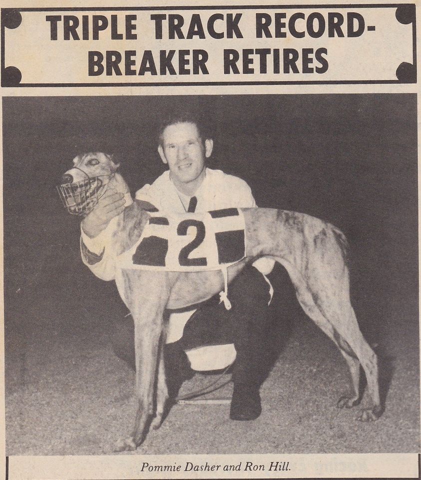 Howard Gray – Brennan Ryan I can actually tell you a bit more about Pommie Dasher she was bred by a famous SA breeder at that time Pam Dodd and Ron got her relatively cheap because she was very timid/spooky. To get her out of it Ron used to take her down to the Elizabeth railway station at peak hour where all the people were getting off and on the train and it worked wonders. Pam Dodd bred many great dogs of that era including the great sire Takiri and his brother Marr William who was exported to America where he was a top stud.