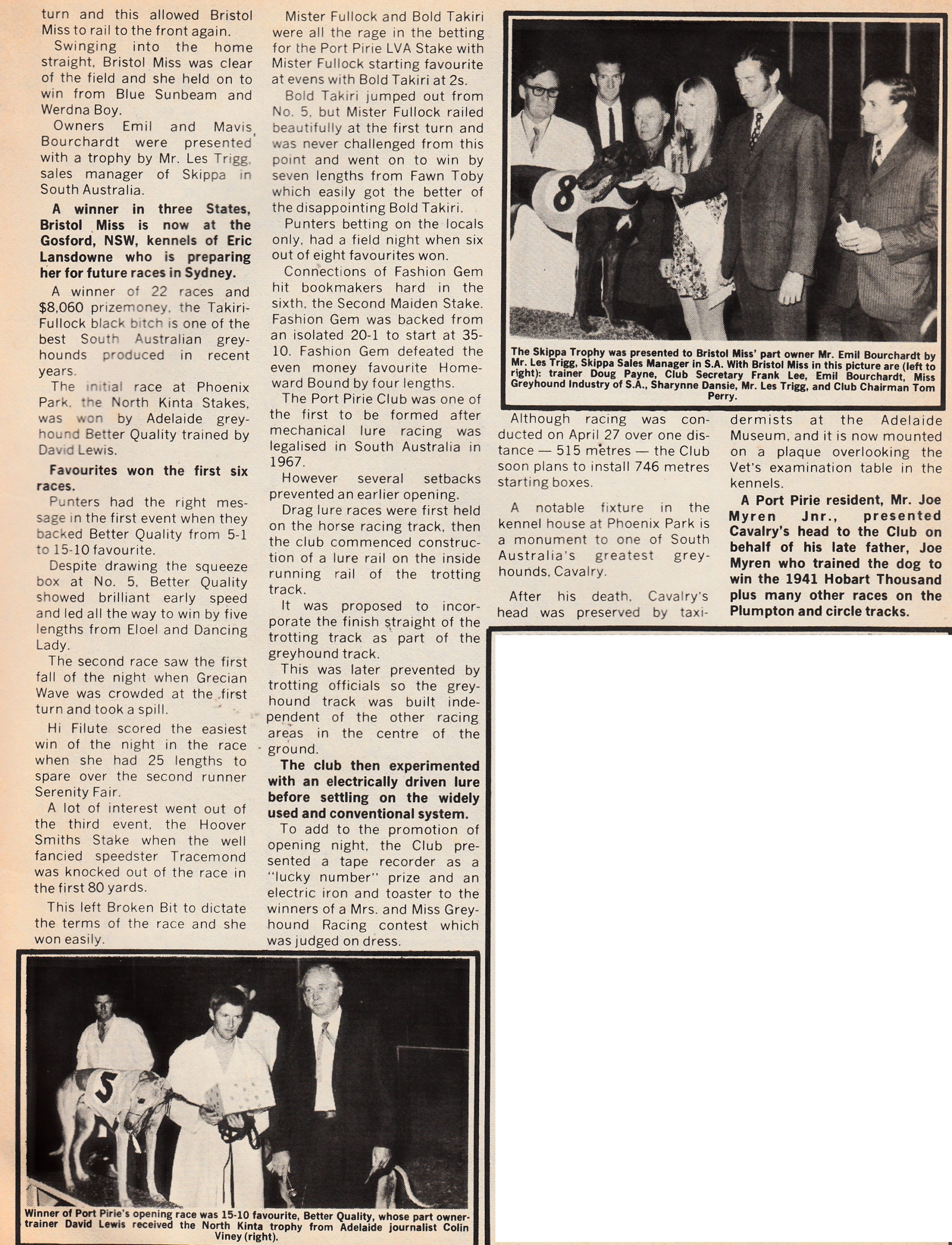 Went to Port Pirie a couple of times in the early 70’s pretty sure it looked the same as it does here in the 90’s. Two things have stuck in my mind ever since. It was the first time I had ever been into a Betting Shop complete with saw dust on the timber floor. Plus, I had never tasted Whiting as good caught fresh that day. Photo’s from opening night in 1972.